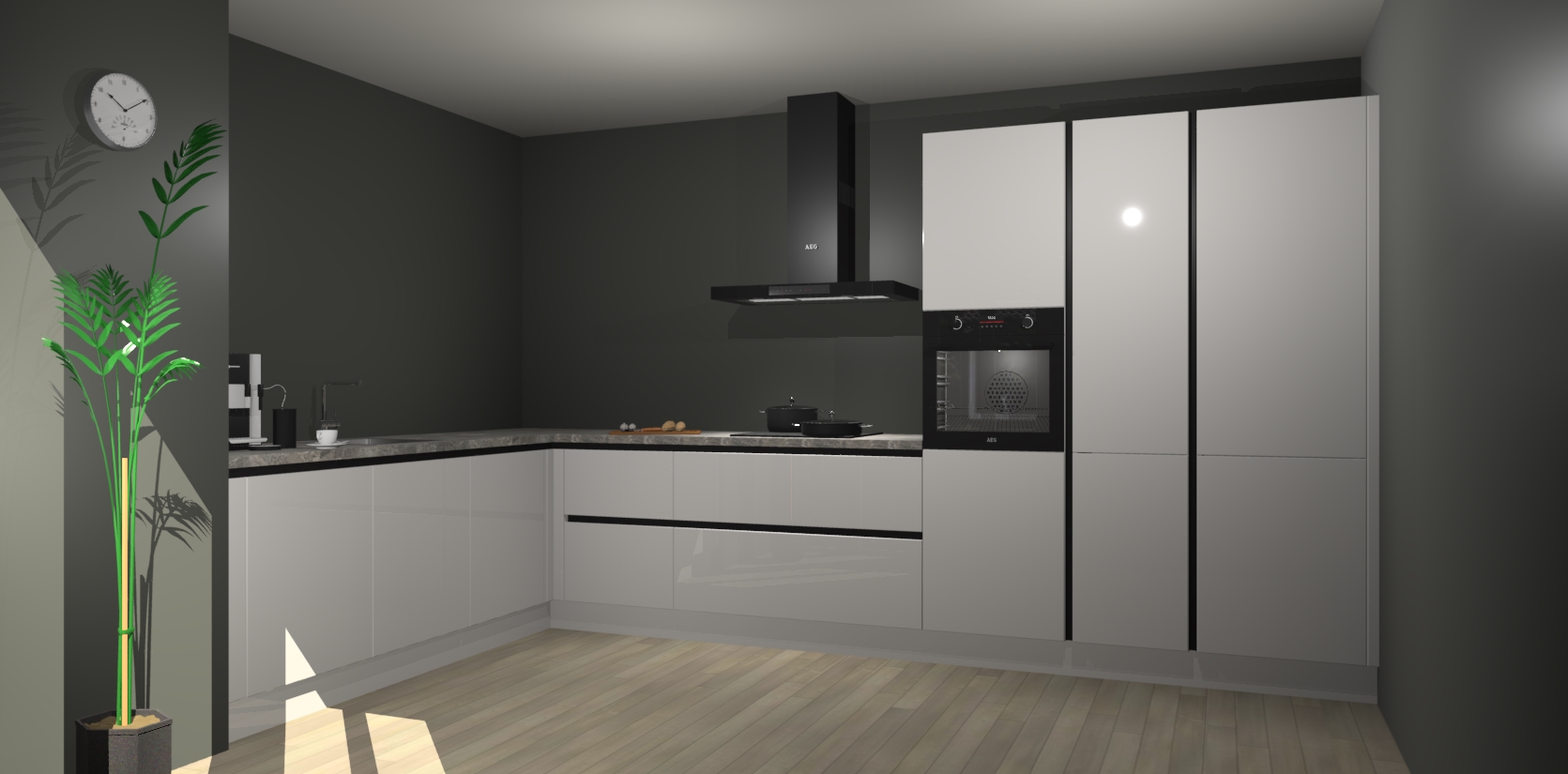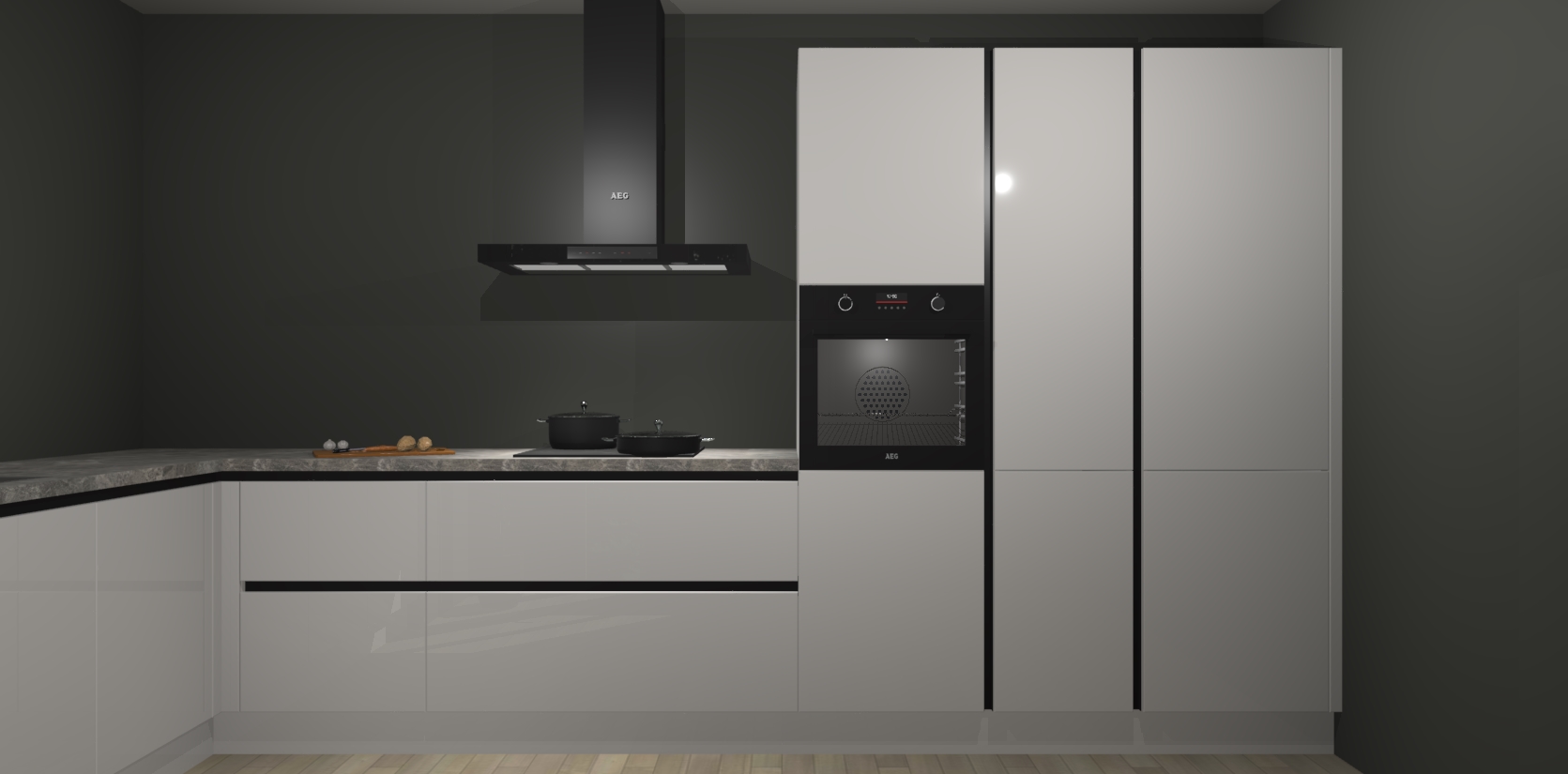 Welkom bij de zijdegrijze hoogglans greeploze keuken Nuuk. Deze prachtige keuken zal de komende jaren het middelpunt van de belangstelling in uw huis zijn. Uitgerust met vijf inbouwapparaten komt u nooit kookgereedschap tekort.