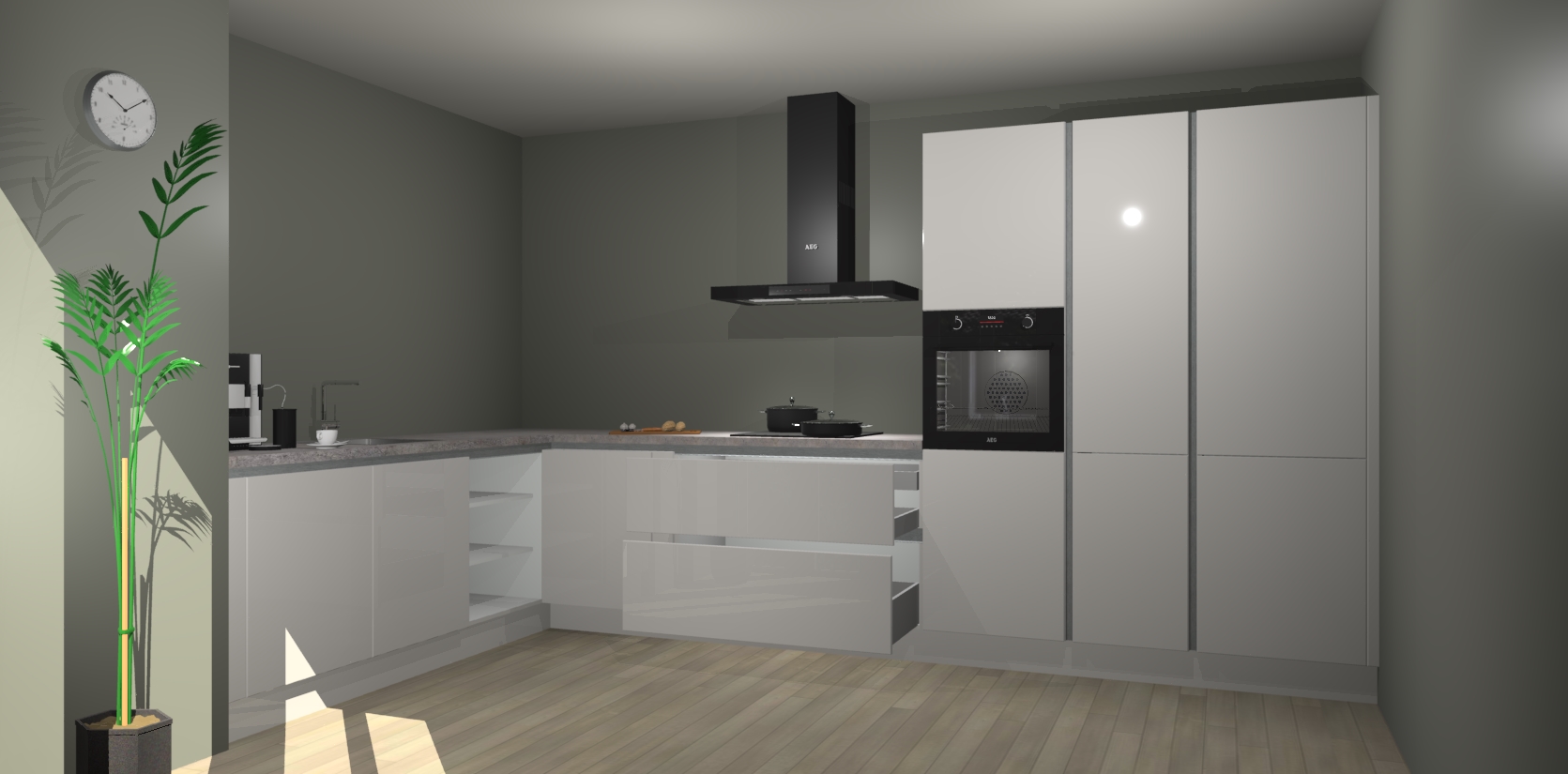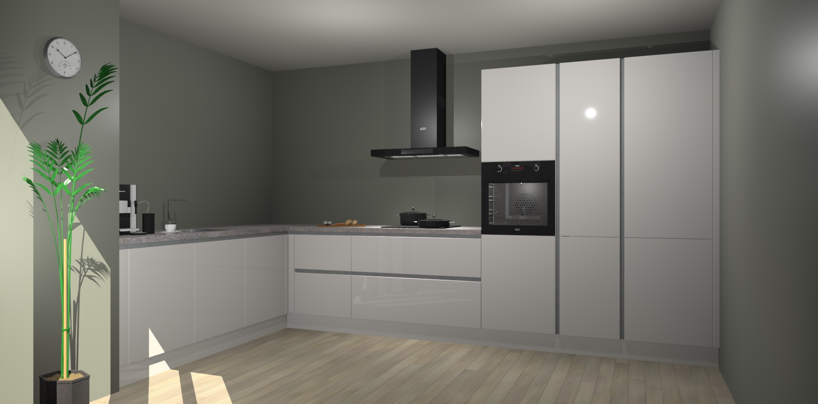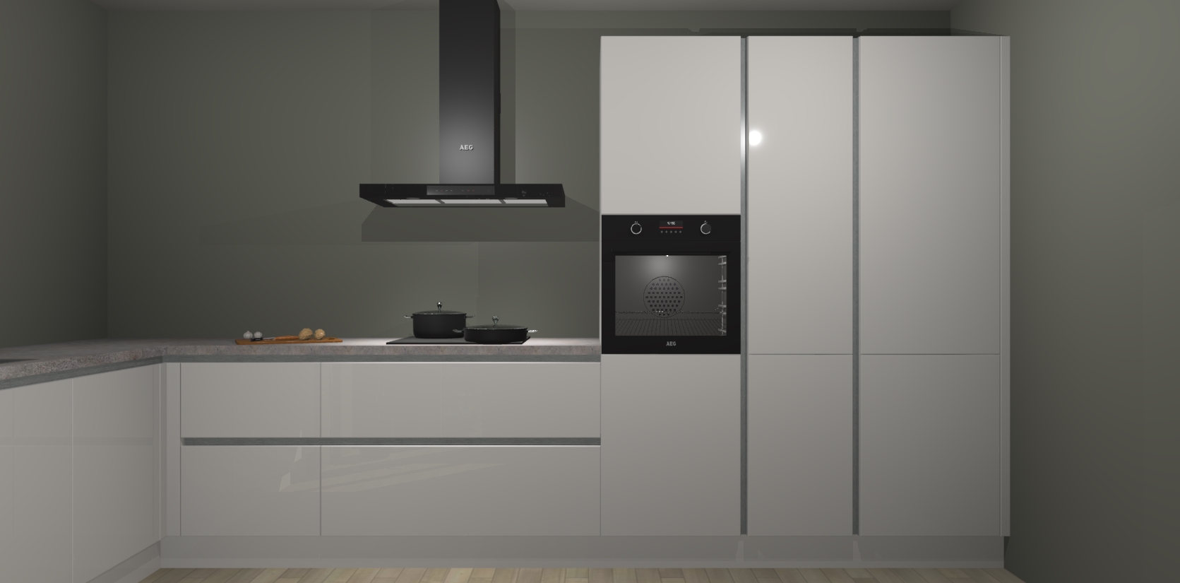Welkom bij de zijdegrijze hoogglans greeploze keuken Nuuk. Deze prachtige keuken zal de komende jaren het middelpunt van de belangstelling in uw huis zijn. Uitgerust met vijf inbouwapparaten komt u nooit kookgereedschap tekort.