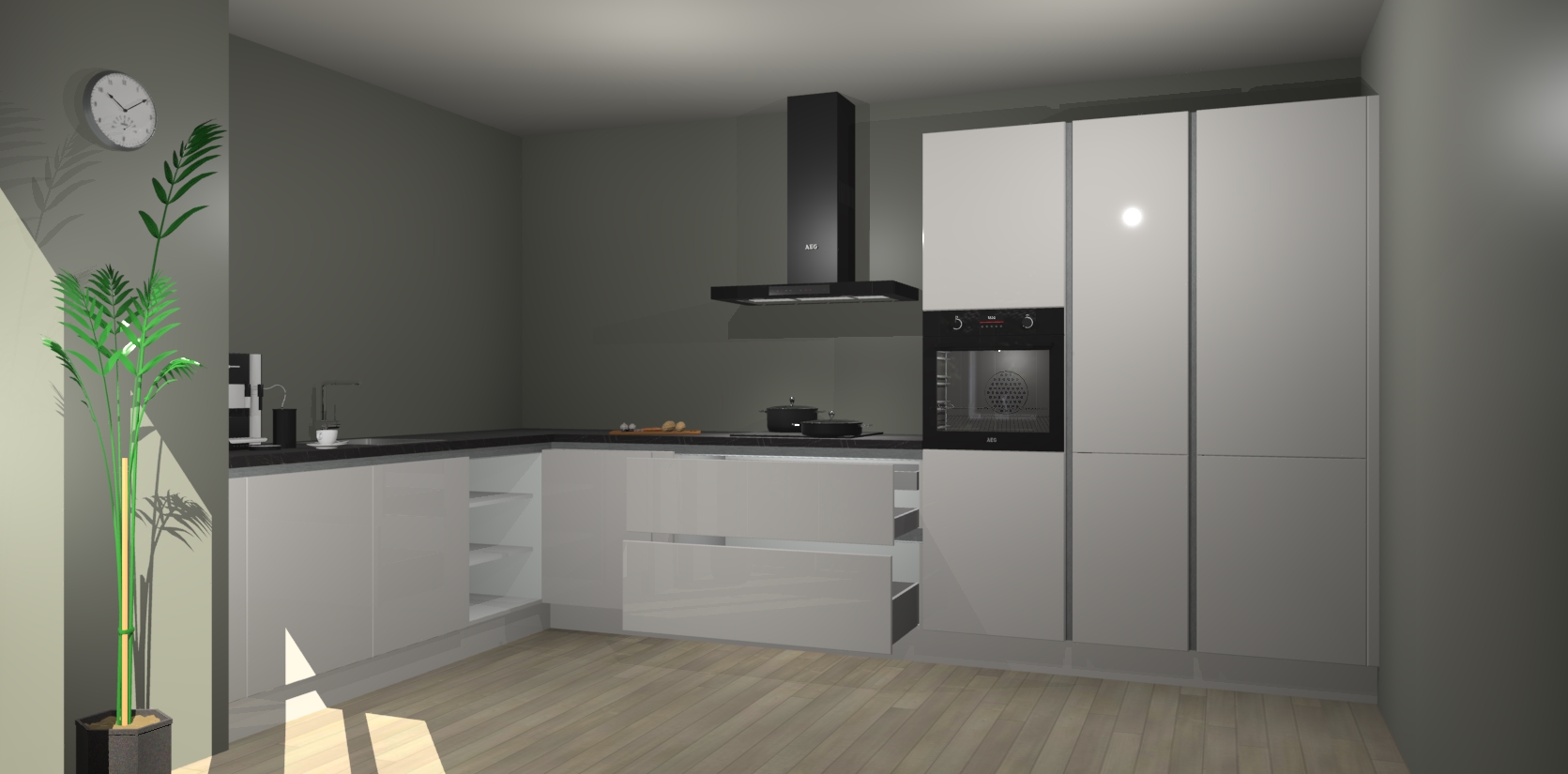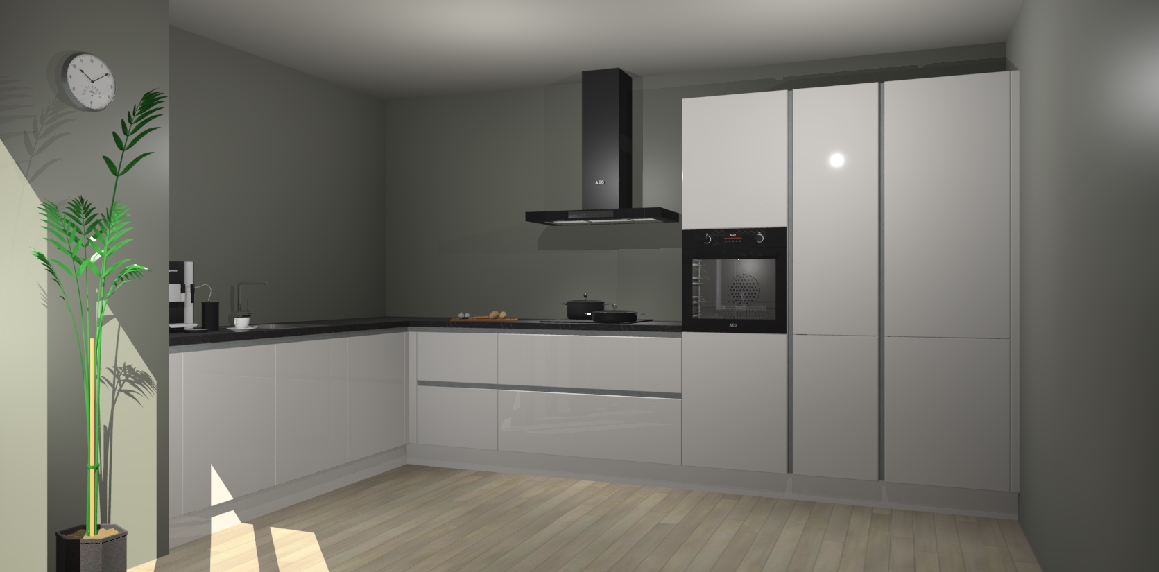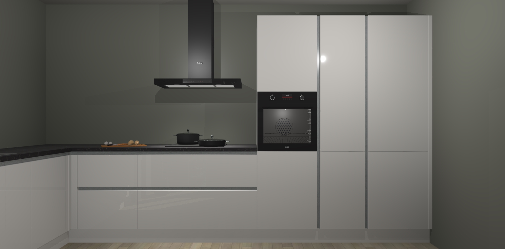 Welkom bij de zijdegrijze hoogglans greeploze keuken Nuuk. Deze prachtige keuken zal de komende jaren het middelpunt van de belangstelling in uw huis zijn. Uitgerust met vijf inbouwapparaten komt u nooit kookgereedschap tekort.
