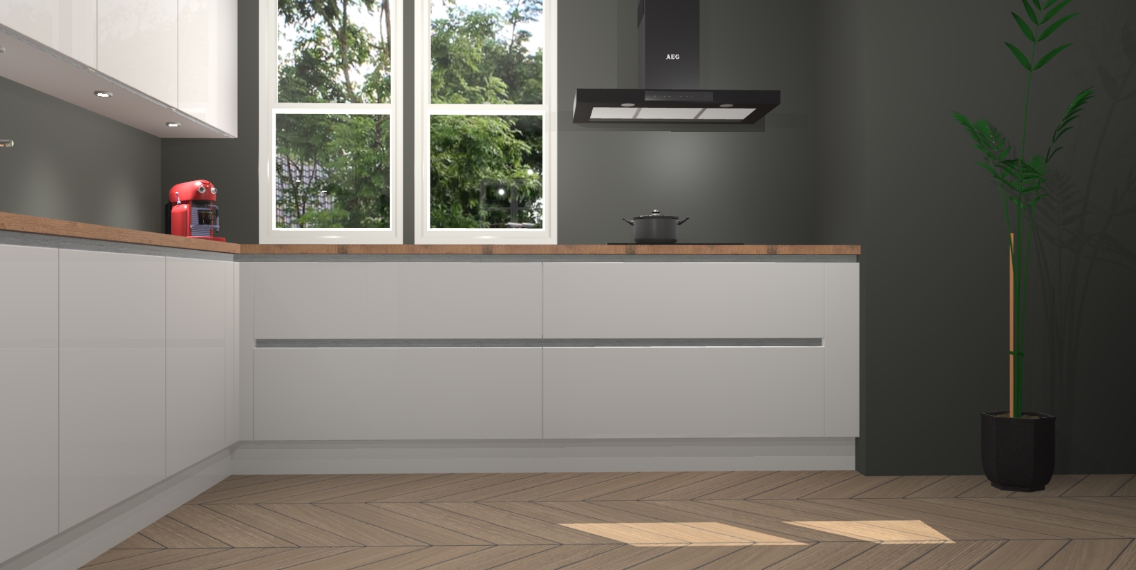 Zijdegrijze hoogglans greeploze keuken Opole zal u de adem benemen met zijn moderne en strakke look!