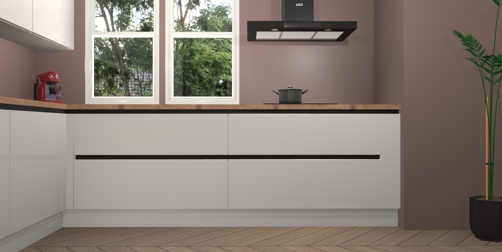 Door het stijlvolle, minimalistische design van de populairste keukens van dit moment te combineren met het gemak en de functionaliteit, heeft u veel opbergruimte en een opgeruimd werkblad. Met de extra bonus van softclose deuren biedt deze witte keuken een eigentijdse maar functionele omgeving voor al uw culinaire behoeften.