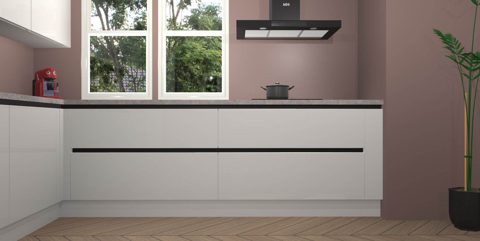 Inclusief plinten, stelpoten en werkblad