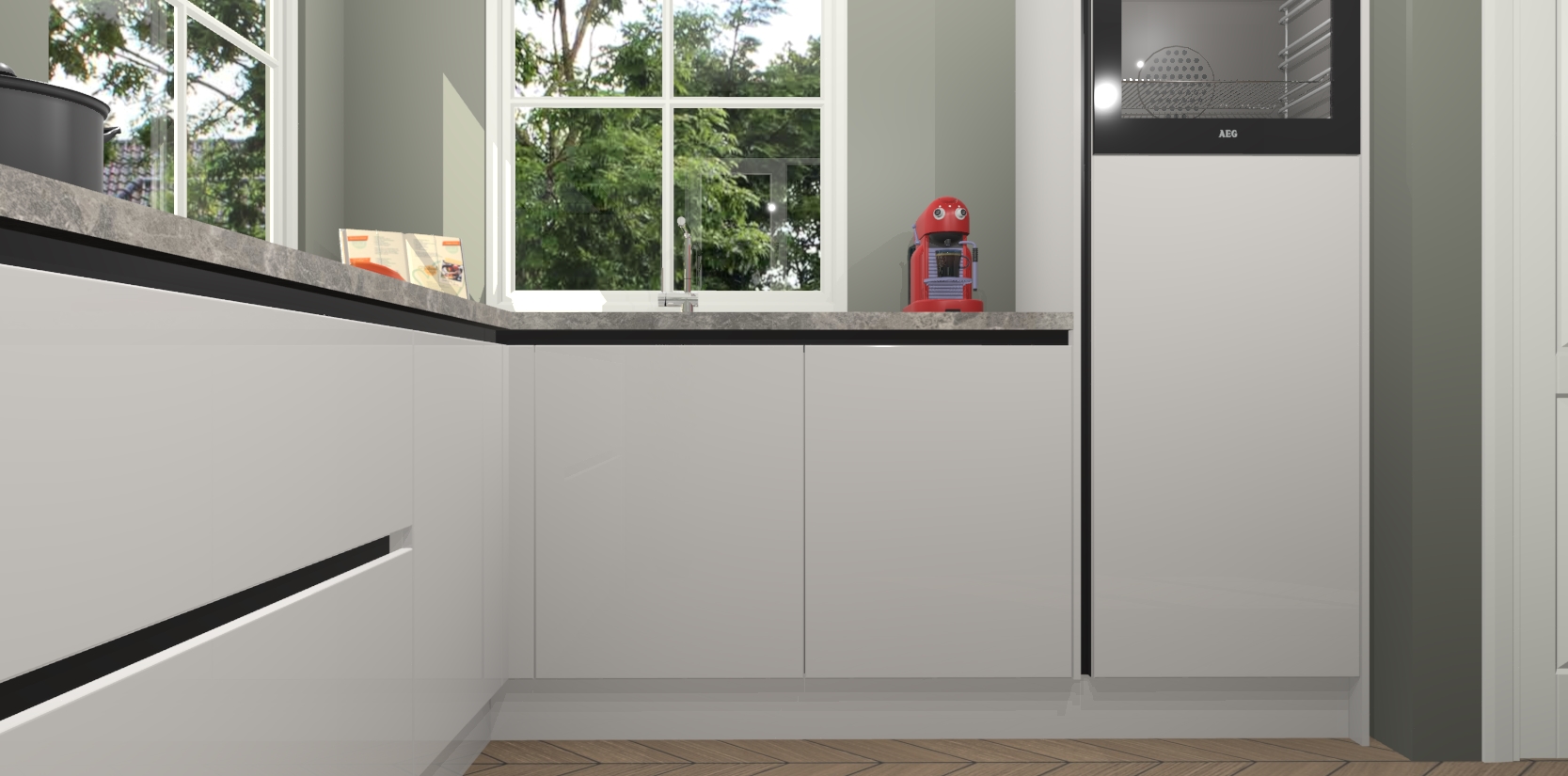 De Zijdegrijze hoogglans greeploze keuken Pai bevat vijf essentiële inbouwapparaten - een oven, inductiekookplaat, afzuigkap, vaatwasser en koelkast - zodat u er na levering meteen in kunt. Voor de slimme kopers die weten dat apparaten vaak het verschil kunnen maken tussen functioneel en luxueus, bieden we eenvoudige upgradeopties naar AEG, van oven naar combimagnetron na bestelling of naar een kookplaat met geïntrigeerde afzuiging. En met onze vaste lage prijs en snelle levering binnen zeven weken vanaf de orderbevestiging hoeft u zich geen zorgen te maken over verborgen kosten of lange levertijden die uw droomkeuken kunnen vertragen.