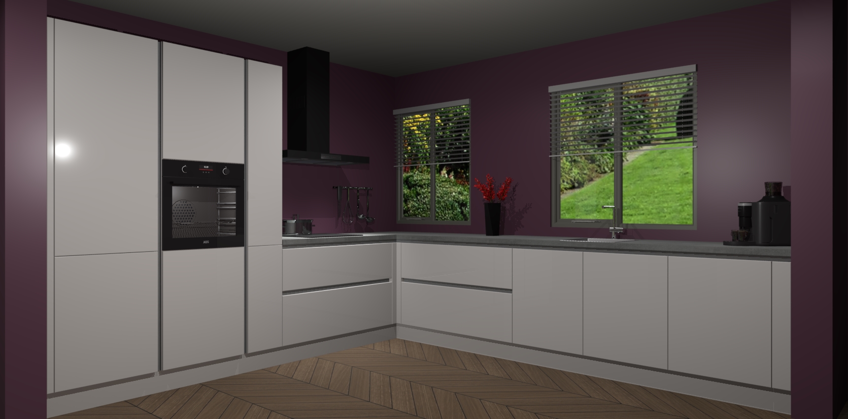 Welkom bij de Zijdegrijze hoogglans keuken Palermo. Deze prachtige keuken zal de komende jaren het middelpunt van de belangstelling in uw huis zijn. Uitgerust met vijf inbouwapparaten komt u nooit kookgereedschap tekort. Bovendien geeft de warme houtlook elke ruimte een uitnodigende en tijdloze uitstraling.