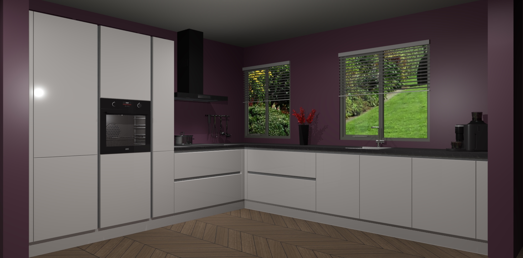 Welkom bij de Zijdegrijze hoogglans keuken Palermo. Deze prachtige keuken zal de komende jaren het middelpunt van de belangstelling in uw huis zijn. Uitgerust met vijf inbouwapparaten komt u nooit kookgereedschap tekort. Bovendien geeft de warme houtlook elke ruimte een uitnodigende en tijdloze uitstraling.
