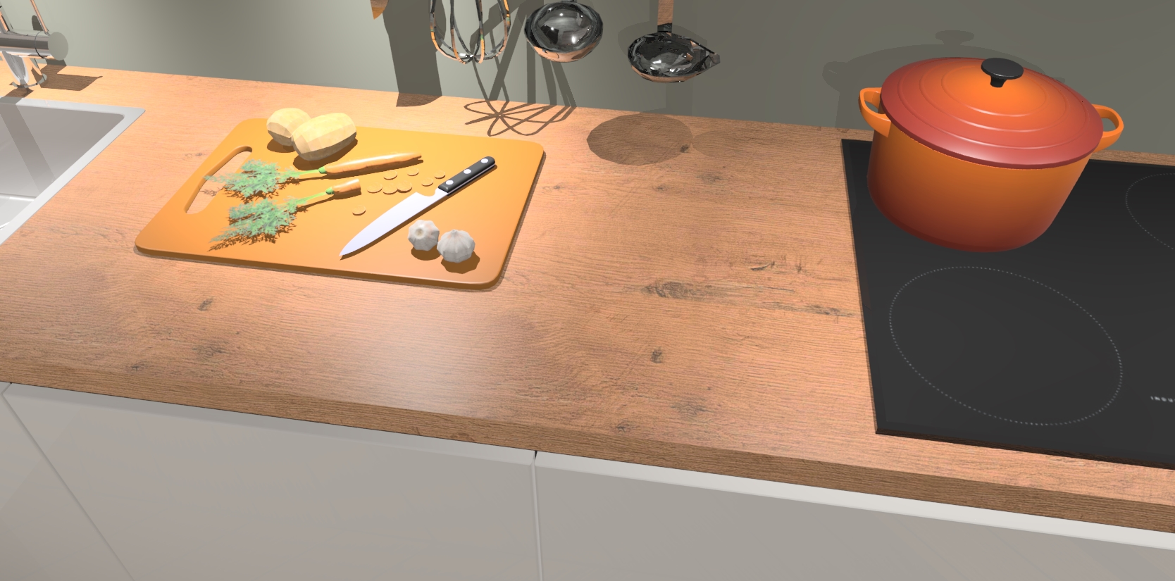 - Uitsparing van kookplaat, spoelbak en kraan dient u zelf te verzorgen.