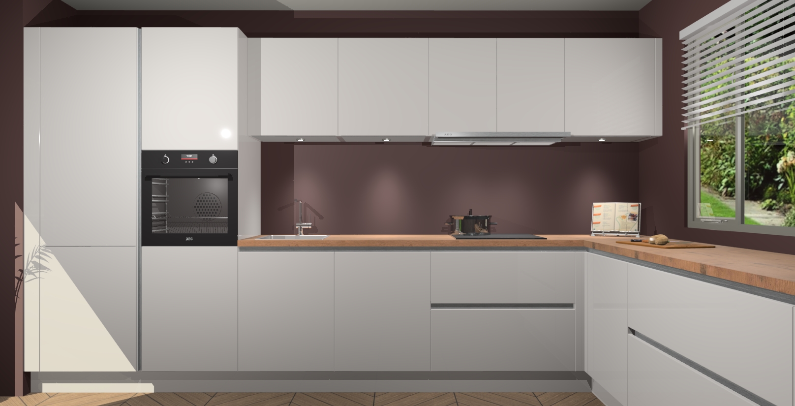 Verwelkom de natuurlijke warmte van de Zijdegrijze Hoogglans greeploze keuken Petten in uw huis. Deze prachtige hoekkeuken met zijn moderne design en warme houten look geeft u meer dan genoeg opbergruimte om uw comfortabel te voelen in uw keuken. Geniet van soft-close deuren die al uw gasten het gevoel zullen geven dat ze zich in een luxueuze ruimte bevinden.