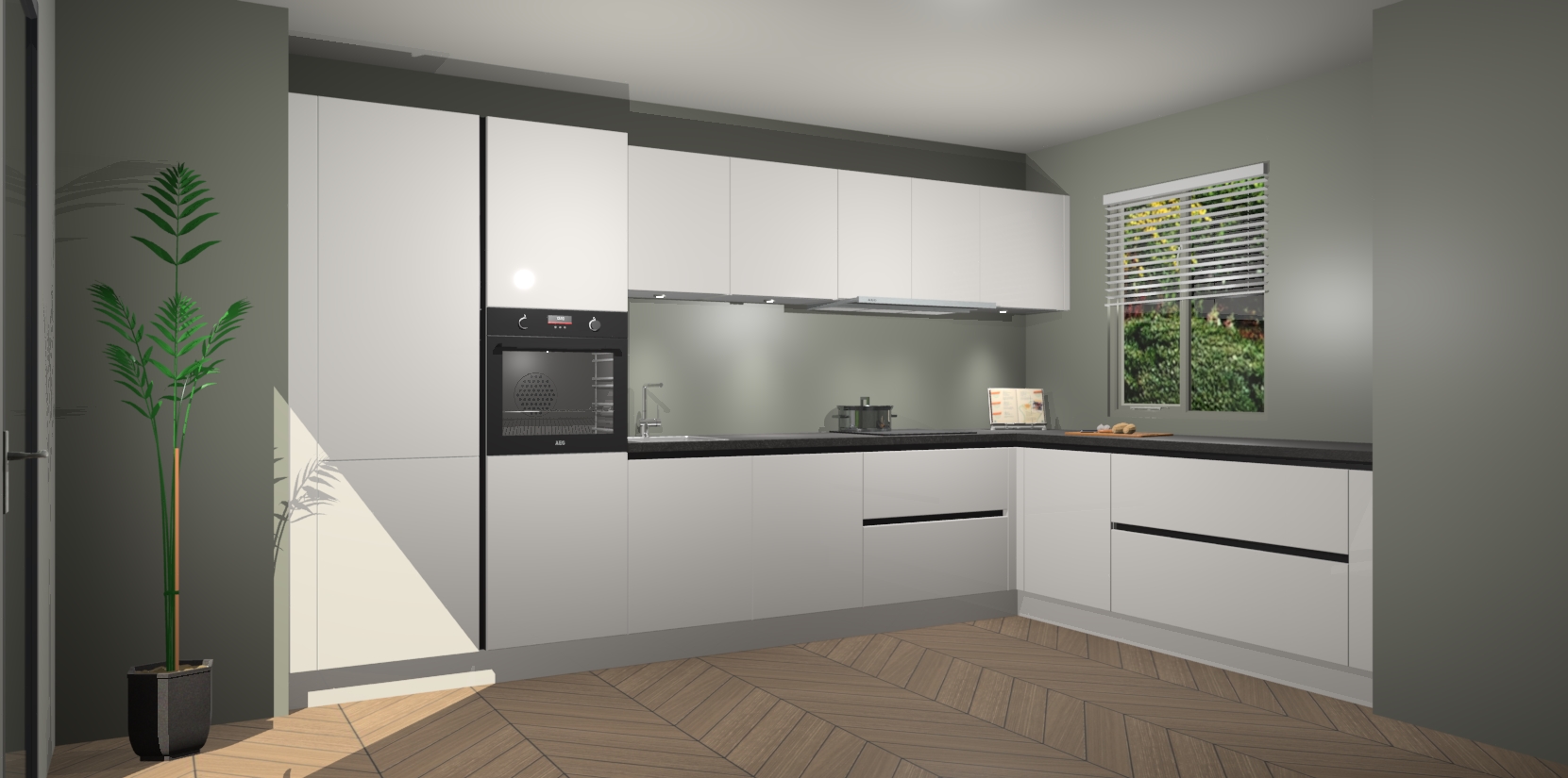 Verwelkom de natuurlijke warmte van de Zijdegrijze Hoogglans greeploze keuken Petten in uw huis. Deze prachtige hoekkeuken met zijn moderne design en warme houten look geeft u meer dan genoeg opbergruimte om uw comfortabel te voelen in uw keuken. Geniet van soft-close deuren die al uw gasten het gevoel zullen geven dat ze zich in een luxueuze ruimte bevinden.