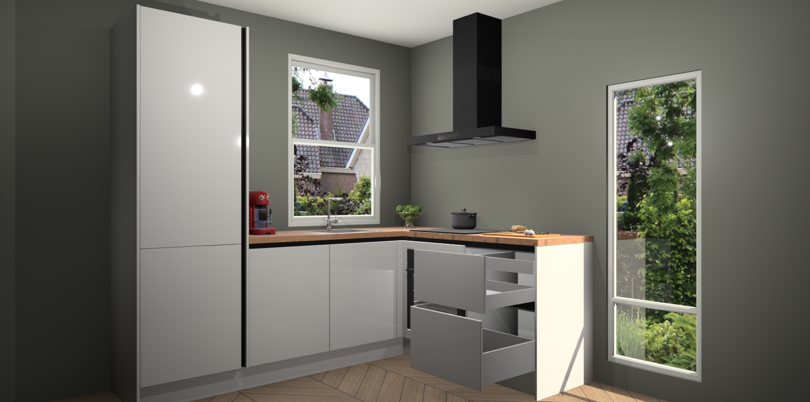 De prachtige Zijdegrijze hoogglans greeploze keuken Phuket is de perfecte keuze als u op zoek bent naar een moderne hoekkeuken met alle luxe en comfort die u kunt verwachten! De uitstraling in het houtlook-design draagt bij aan de warme sfeer die u nu al voelt wanneer u er naar kijkt. Heeft u genoeg van ouderwetse keukens? Probeer dan direct deze moderne, mooie hoekkeukens en laat iedereen verbluft achter!