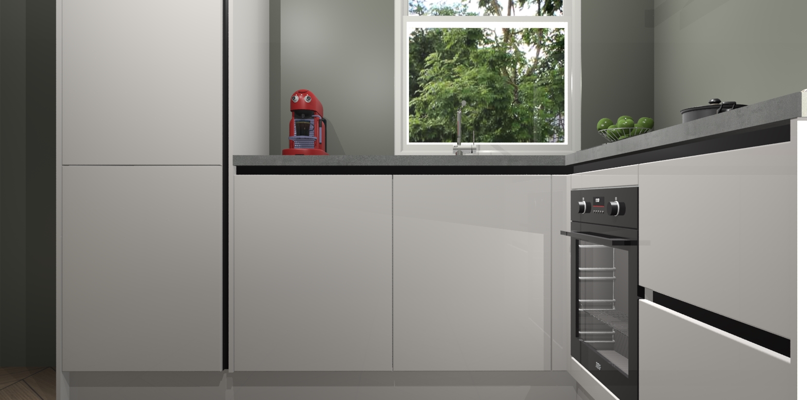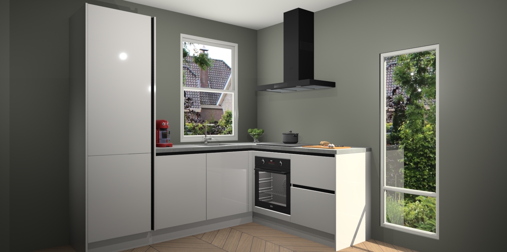 De Zijdegrijze hoogglans greeploze keuken Phuket heeft alles wat u maar kunt wensen. Niet alleen zijn er softclose deuren, maar ook 5 ingebouwde apparaten: een oven, inductiekookplaat, afzuigkap, vaatwasser en koelkast - waarbij u later gemakkelijk naar het AEG merk, van inductiekookplaat naar kookplaat met geïntegreerde afzuiging of van oven naar combimagnetron kunt upgraden. Dat alles tegen een vast laag tarief! Bovendien geeft de Zijdegrijze hoogglans greeploze keuken Phuket supersnelle levering van 7 weken. Echt iets voor u als u er niet op wilt wachten om het resultaat te zien in eigen keuken!