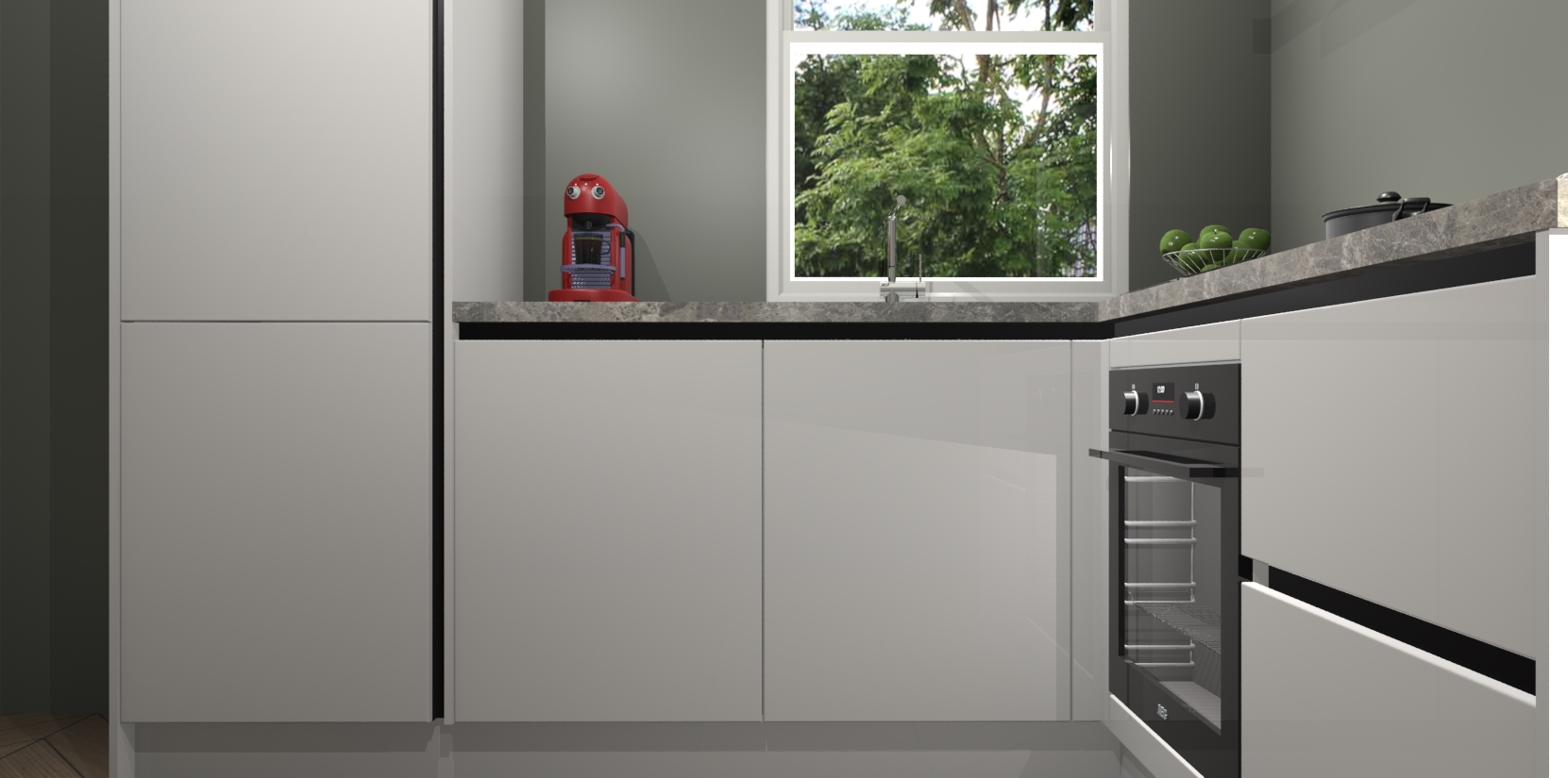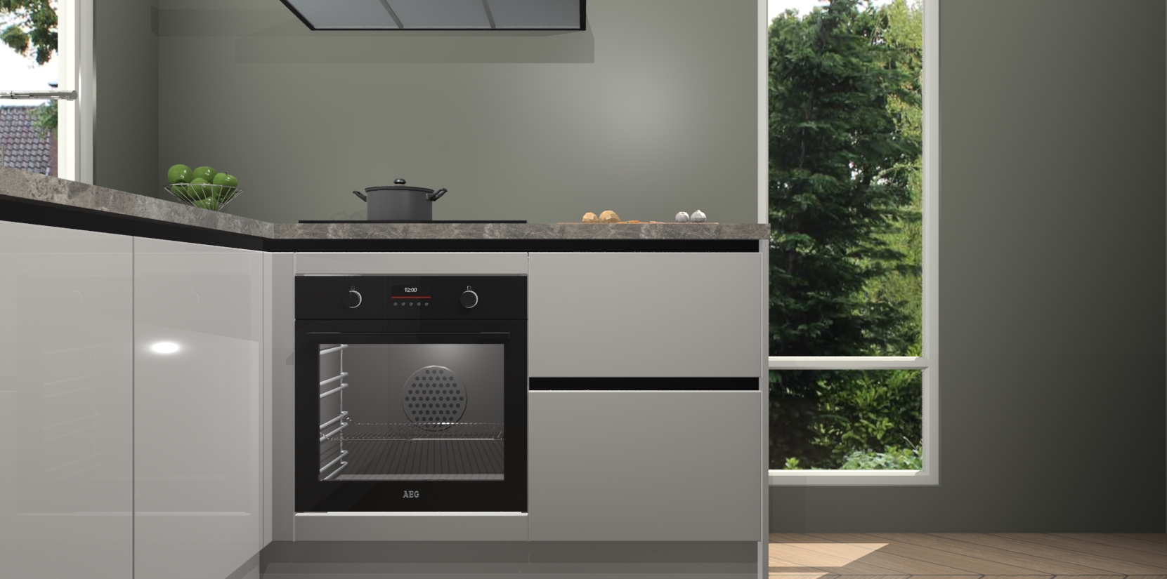De Zijdegrijze hoogglans greeploze keuken Phuket heeft alles wat u maar kunt wensen. Niet alleen zijn er softclose deuren, maar ook 5 ingebouwde apparaten: een oven, inductiekookplaat, afzuigkap, vaatwasser en koelkast - waarbij u later gemakkelijk naar het AEG merk, van inductiekookplaat naar kookplaat met geïntegreerde afzuiging of van oven naar combimagnetron kunt upgraden. Dat alles tegen een vast laag tarief! Bovendien geeft de Zijdegrijze hoogglans greeploze keuken Phuket supersnelle levering van 7 weken. Echt iets voor u als u er niet op wilt wachten om het resultaat te zien in eigen keuken!