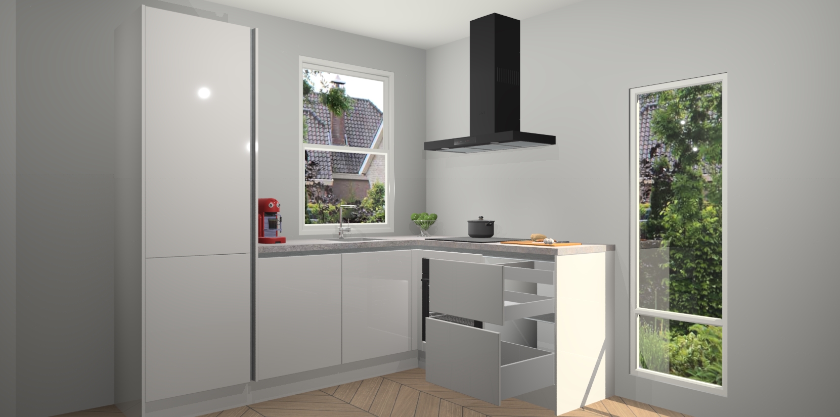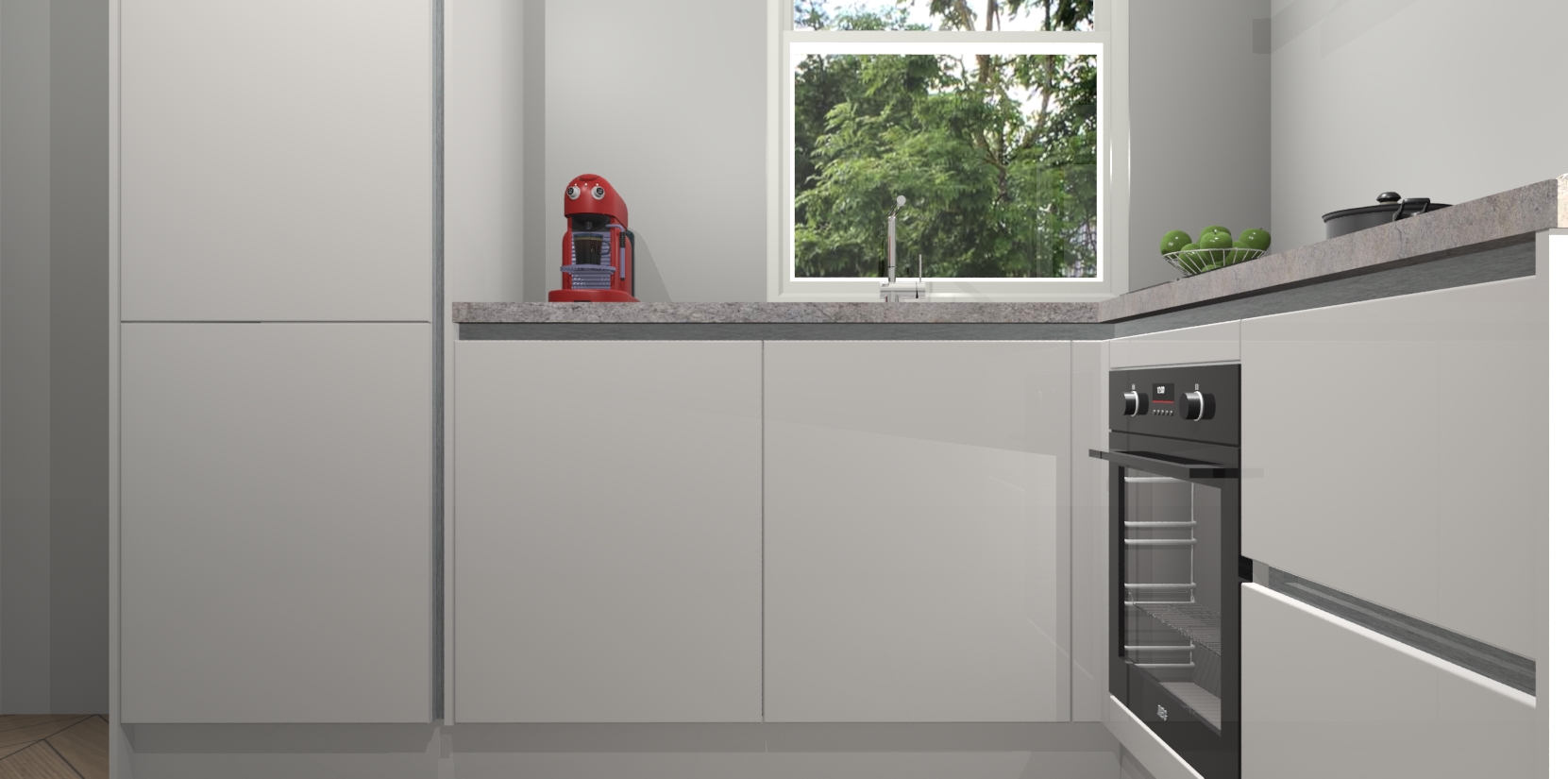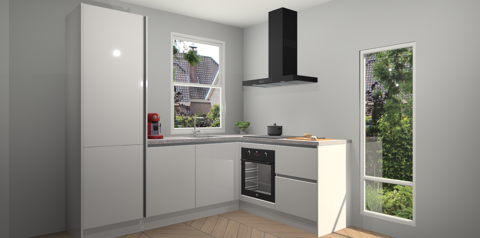 De Zijdegrijze hoogglans greeploze keuken Phuket heeft alles wat u maar kunt wensen. Niet alleen zijn er softclose deuren, maar ook 5 ingebouwde apparaten: een oven, inductiekookplaat, afzuigkap, vaatwasser en koelkast - waarbij u later gemakkelijk naar het AEG merk, van inductiekookplaat naar kookplaat met geïntegreerde afzuiging of van oven naar combimagnetron kunt upgraden. Dat alles tegen een vast laag tarief! Bovendien geeft de Zijdegrijze hoogglans greeploze keuken Phuket supersnelle levering van 7 weken. Echt iets voor u als u er niet op wilt wachten om het resultaat te zien in eigen keuken!