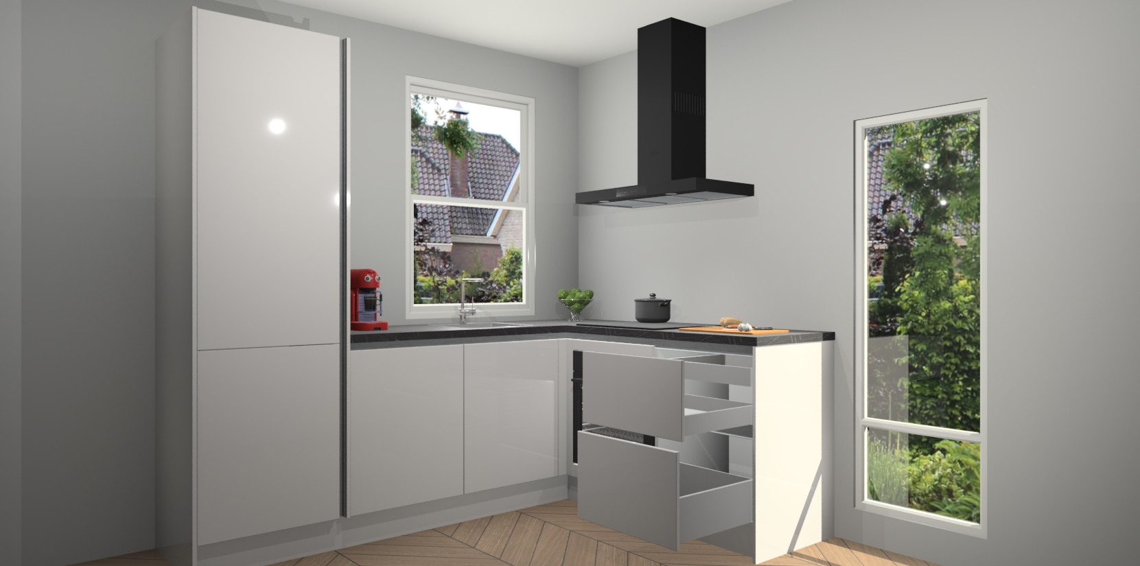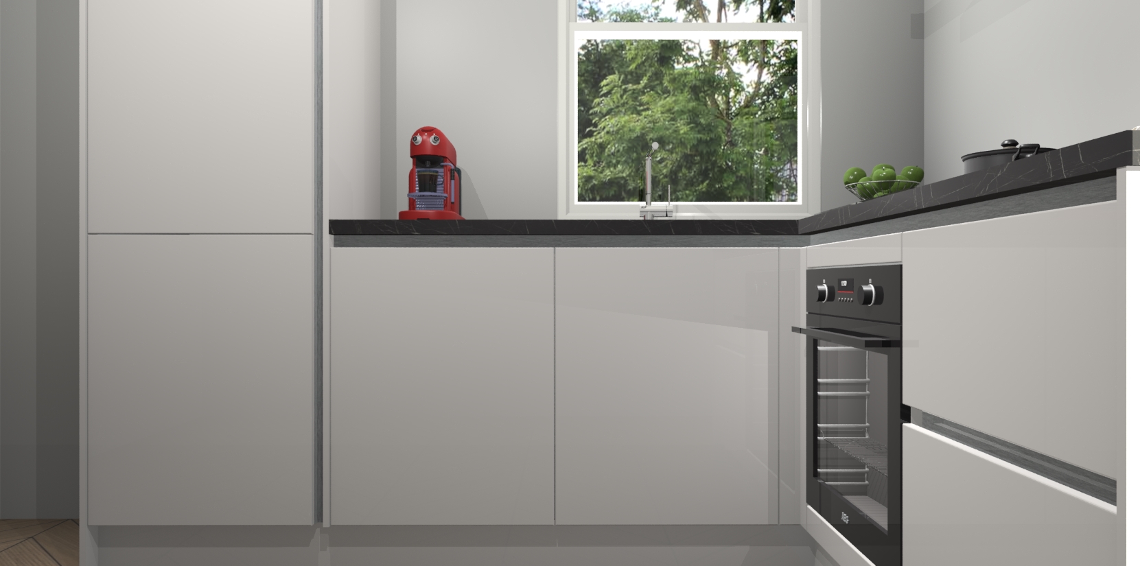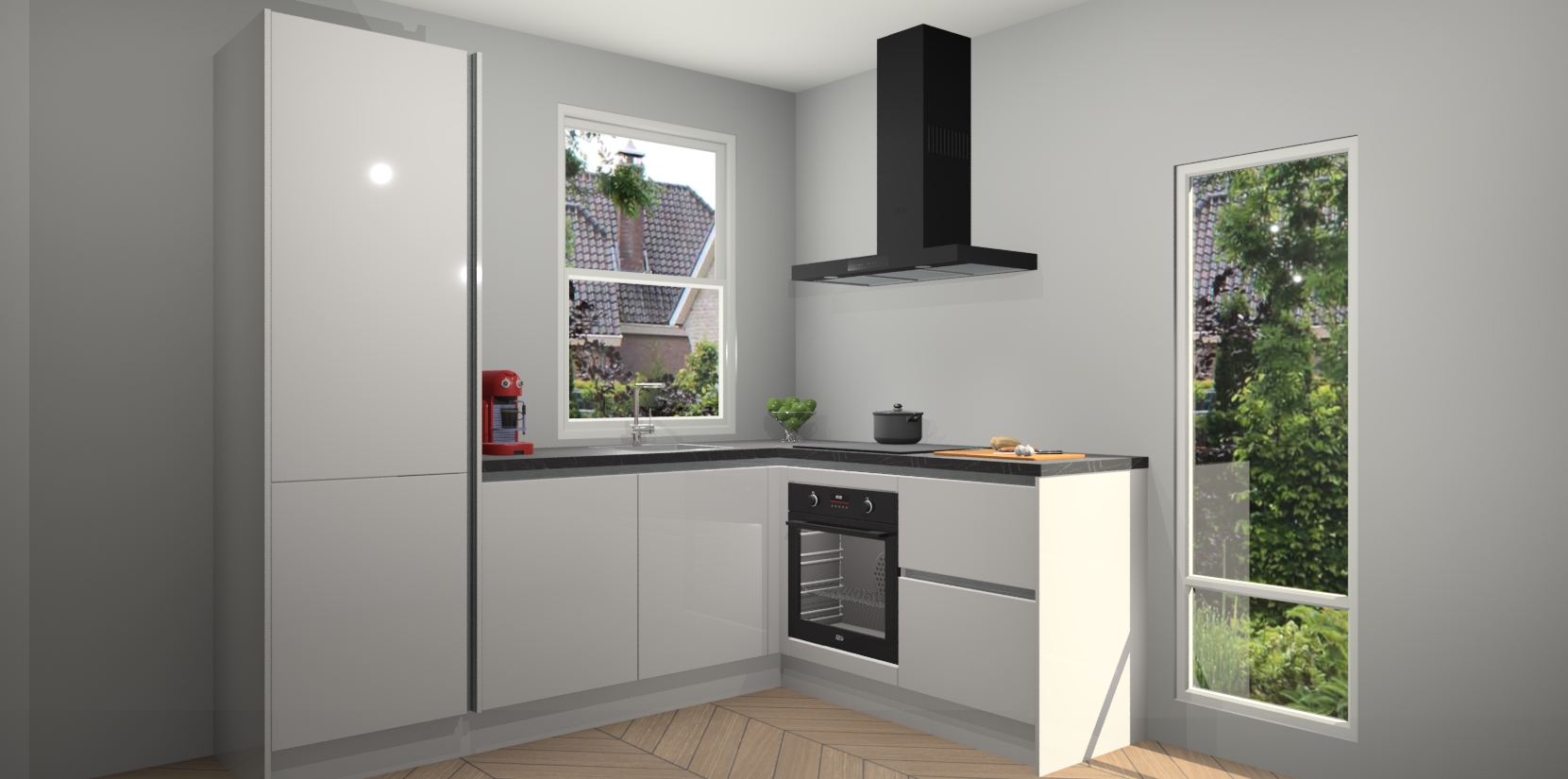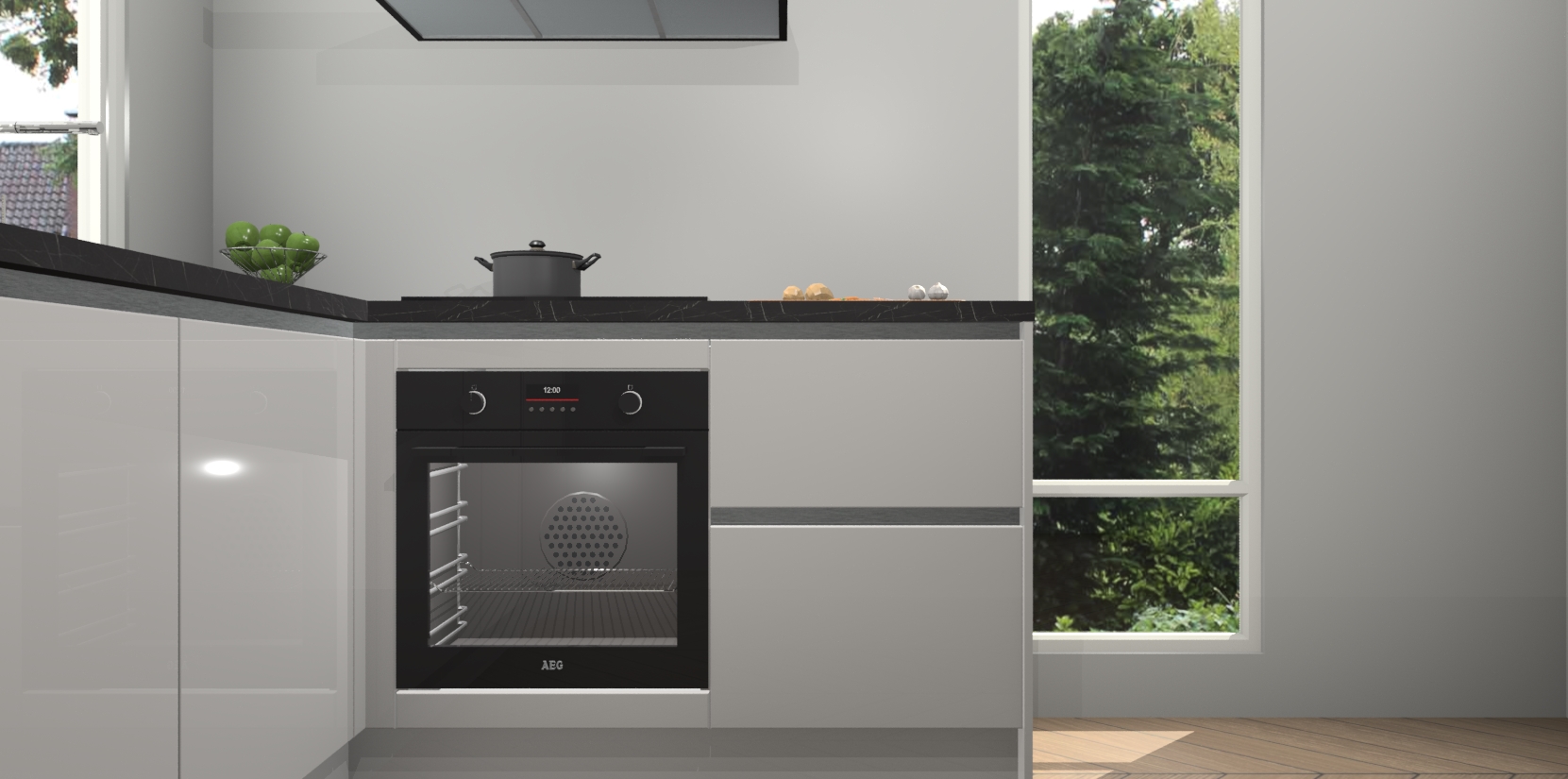 De Zijdegrijze hoogglans greeploze keuken Phuket heeft alles wat u maar kunt wensen. Niet alleen zijn er softclose deuren, maar ook 5 ingebouwde apparaten: een oven, inductiekookplaat, afzuigkap, vaatwasser en koelkast - waarbij u later gemakkelijk naar het AEG merk, van inductiekookplaat naar kookplaat met geïntegreerde afzuiging of van oven naar combimagnetron kunt upgraden. Dat alles tegen een vast laag tarief! Bovendien geeft de Zijdegrijze hoogglans greeploze keuken Phuket supersnelle levering van 7 weken. Echt iets voor u als u er niet op wilt wachten om het resultaat te zien in eigen keuken!