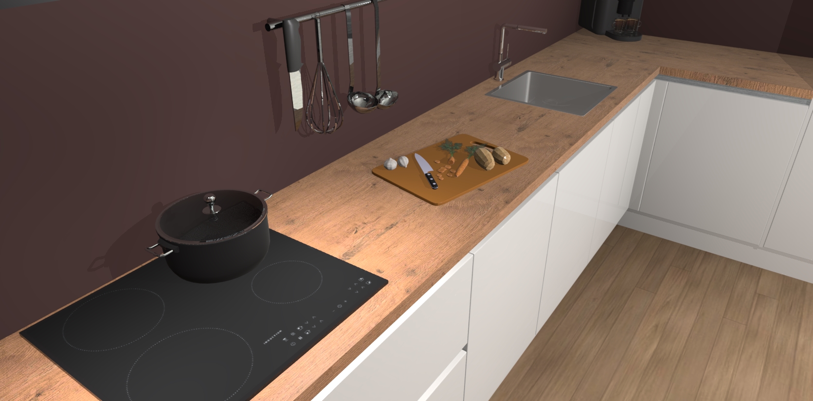 - Bij een hoekwerkblad zijn de hoeken in gevreesd en op maat gemaakt