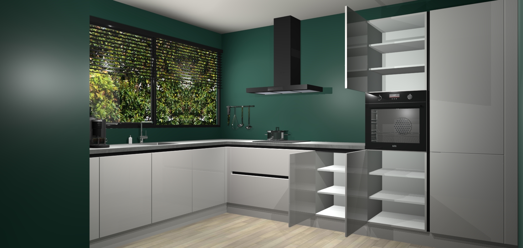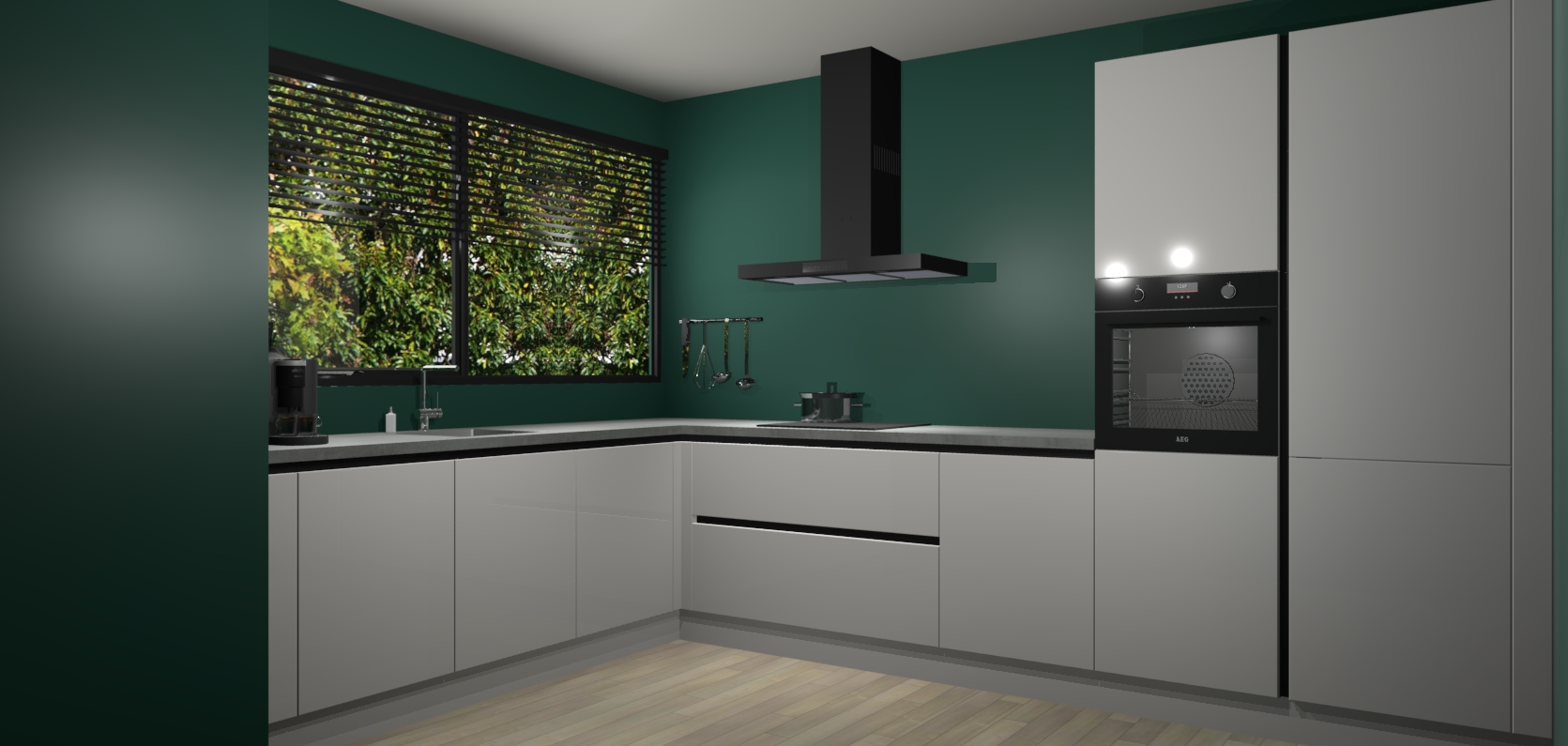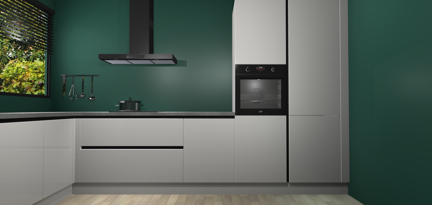 Met een modern, tijdloos design en ruime opslagruimte, zult u zich in no-time thuis voelen in uw nieuwe keuken. Uw leven wordt eenvoudiger met de soft-close deuren die voor het ultieme stille comfort zorgen - geen geluid dat u stoort terwijl u kookt. Ook is de keuken voorzien van 5 ingebouwde apparaten: een oven, inductie kookplaat, afzuigkap, vaatwasser en koelkast. Deze kunnen gemakkelijk na bestelling worden bijgewerkt naar AEG - waardoor uw luxe ervaring compleet is.