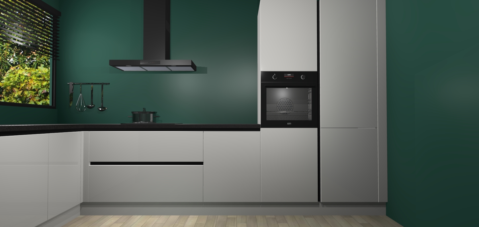Met een modern, tijdloos design en ruime opslagruimte, zult u zich in no-time thuis voelen in uw nieuwe keuken. Uw leven wordt eenvoudiger met de soft-close deuren die voor het ultieme stille comfort zorgen - geen geluid dat u stoort terwijl u kookt. Ook is de keuken voorzien van 5 ingebouwde apparaten: een oven, inductie kookplaat, afzuigkap, vaatwasser en koelkast. Deze kunnen gemakkelijk na bestelling worden bijgewerkt naar AEG - waardoor uw luxe ervaring compleet is.
