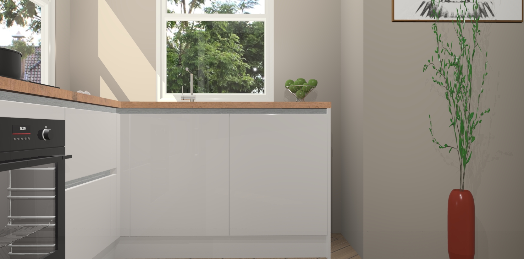 Wat maakt deze keuken zo bijzonder? Ten eerste geeft het houten werkblad uw ruimte een onmiskenbaar klassieke uitstraling. De natuurlijke afwerking roept warmte en elegantie op die nooit uit de mode zullen raken. Bovendien is het gemakkelijk schoon te houden en te onderhouden, zodat je er jarenlang plezier van kunt hebben. Als u op zoek bent naar extra gemak in uw keuken, dan heeft u bij het plaatsen van een bestelling bij ons ook de optie om uw toestellen te upgraden naar AEG-modellen - zo haalt u moderne innovatie van topmerken in apparatentechnologie rechtstreeks in huis.
