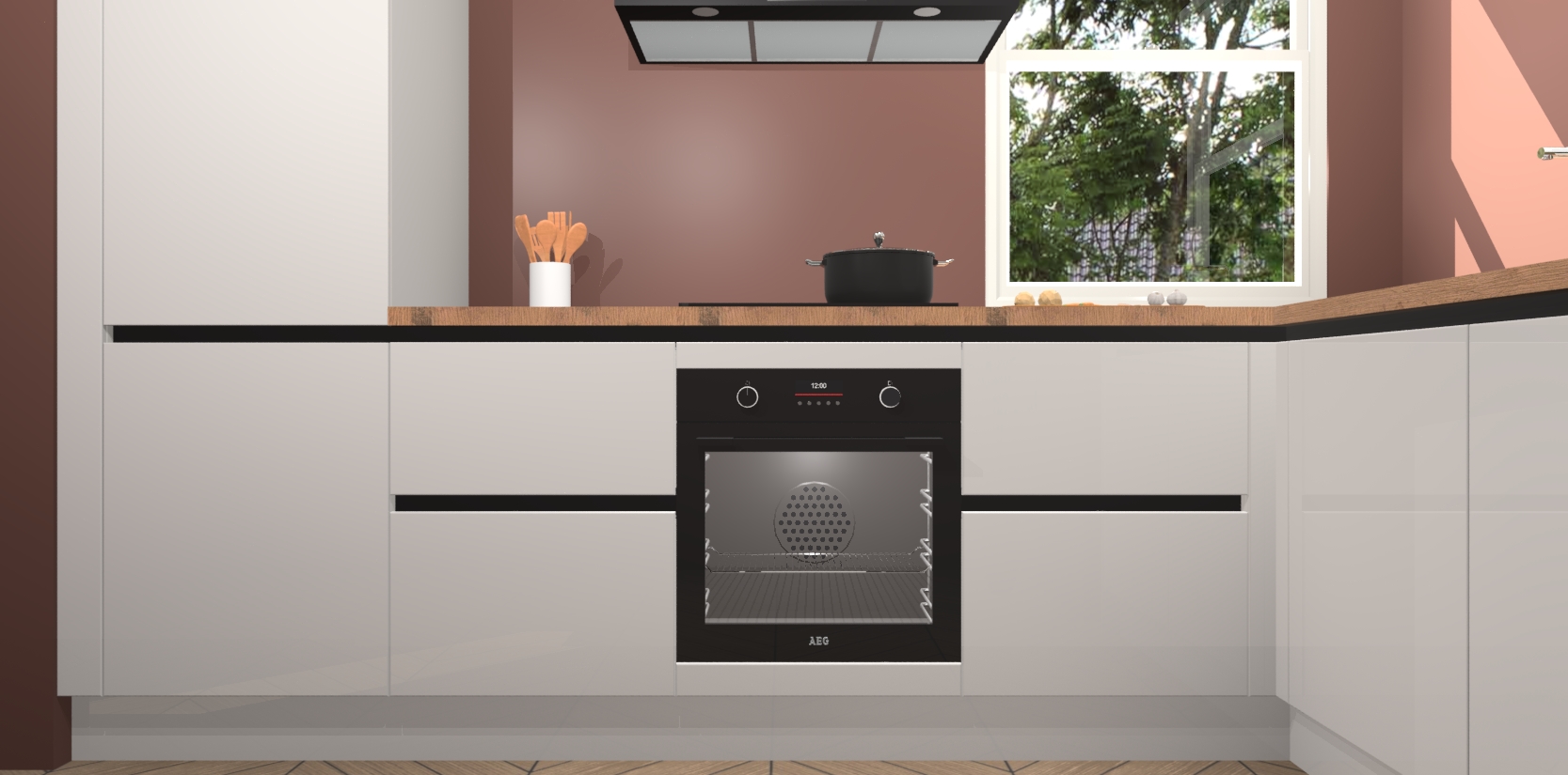 Wat maakt deze keuken zo bijzonder? Ten eerste geeft het houten werkblad uw ruimte een onmiskenbaar klassieke uitstraling. De natuurlijke afwerking roept warmte en elegantie op die nooit uit de mode zullen raken. Bovendien is het gemakkelijk schoon te houden en te onderhouden, zodat je er jarenlang plezier van kunt hebben. Als u op zoek bent naar extra gemak in uw keuken, dan heeft u bij het plaatsen van een bestelling bij ons ook de optie om uw toestellen te upgraden naar AEG-modellen - zo haalt u moderne innovatie van topmerken in apparatentechnologie rechtstreeks in huis.