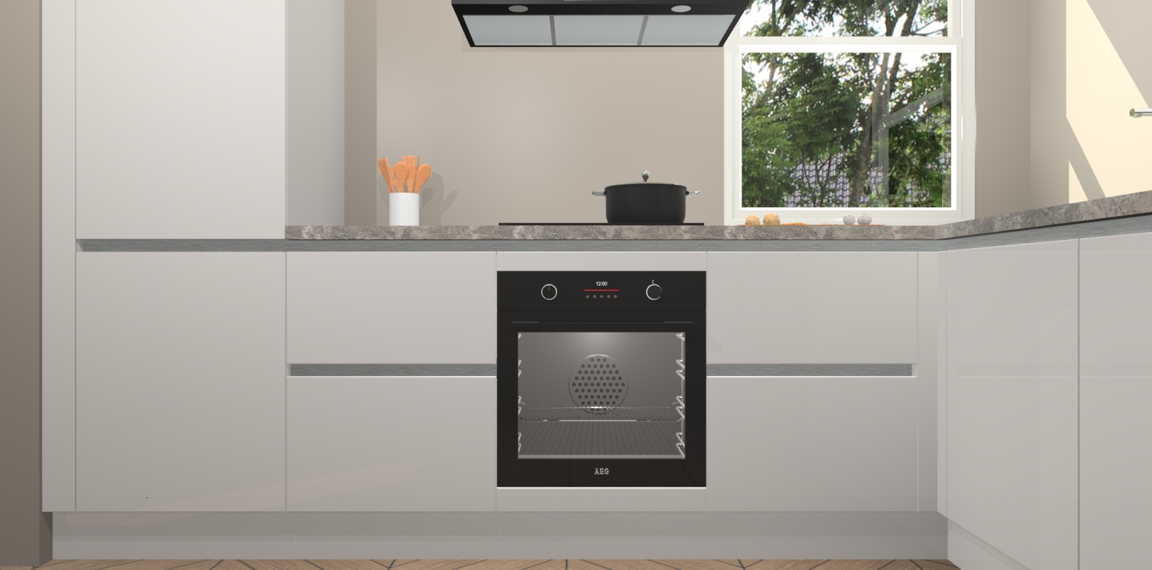 Wat maakt deze keuken zo bijzonder? Ten eerste geeft het houten werkblad uw ruimte een onmiskenbaar klassieke uitstraling. De natuurlijke afwerking roept warmte en elegantie op die nooit uit de mode zullen raken. Bovendien is het gemakkelijk schoon te houden en te onderhouden, zodat je er jarenlang plezier van kunt hebben. Als u op zoek bent naar extra gemak in uw keuken, dan heeft u bij het plaatsen van een bestelling bij ons ook de optie om uw toestellen te upgraden naar AEG-modellen - zo haalt u moderne innovatie van topmerken in apparatentechnologie rechtstreeks in huis.