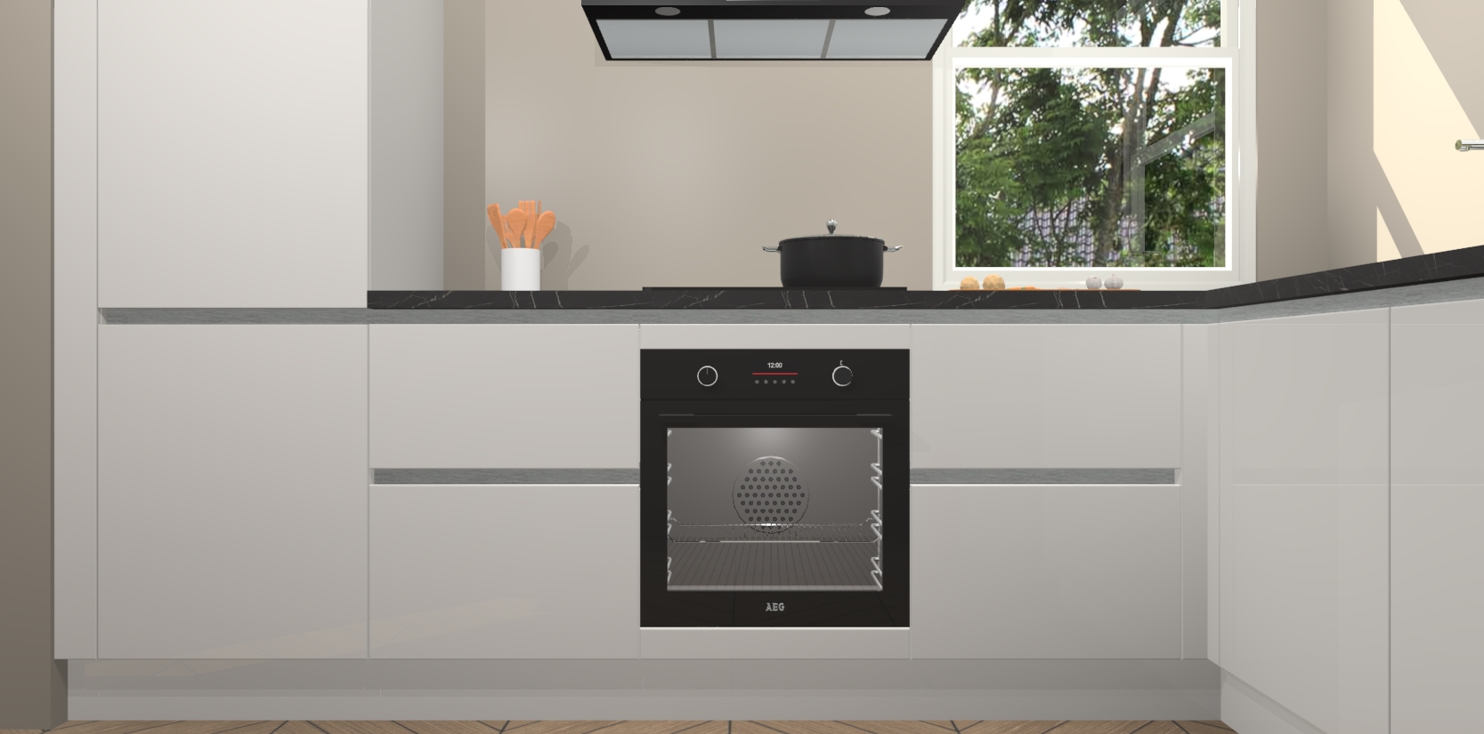Wat maakt deze keuken zo bijzonder? Ten eerste geeft het houten werkblad uw ruimte een onmiskenbaar klassieke uitstraling. De natuurlijke afwerking roept warmte en elegantie op die nooit uit de mode zullen raken. Bovendien is het gemakkelijk schoon te houden en te onderhouden, zodat je er jarenlang plezier van kunt hebben. Als u op zoek bent naar extra gemak in uw keuken, dan heeft u bij het plaatsen van een bestelling bij ons ook de optie om uw toestellen te upgraden naar AEG-modellen - zo haalt u moderne innovatie van topmerken in apparatentechnologie rechtstreeks in huis.