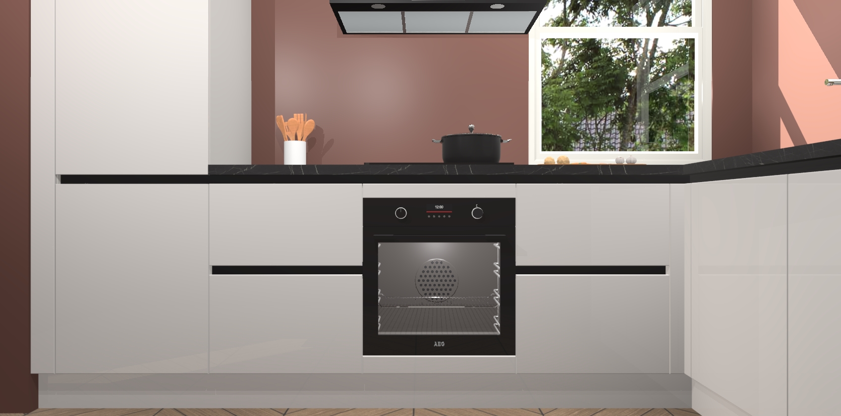Wat maakt deze keuken zo bijzonder? Ten eerste geeft het houten werkblad uw ruimte een onmiskenbaar klassieke uitstraling. De natuurlijke afwerking roept warmte en elegantie op die nooit uit de mode zullen raken. Bovendien is het gemakkelijk schoon te houden en te onderhouden, zodat je er jarenlang plezier van kunt hebben. Als u op zoek bent naar extra gemak in uw keuken, dan heeft u bij het plaatsen van een bestelling bij ons ook de optie om uw toestellen te upgraden naar AEG-modellen - zo haalt u moderne innovatie van topmerken in apparatentechnologie rechtstreeks in huis.