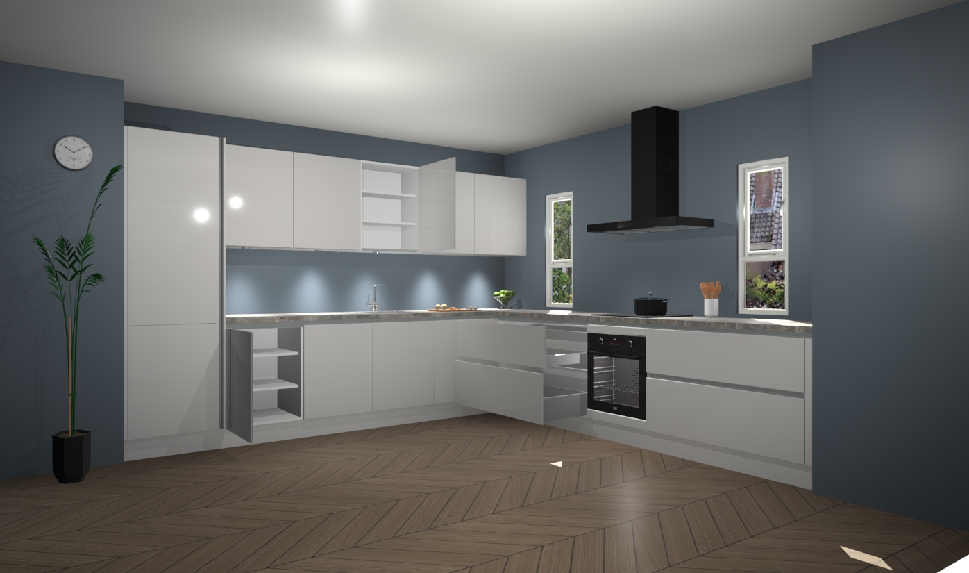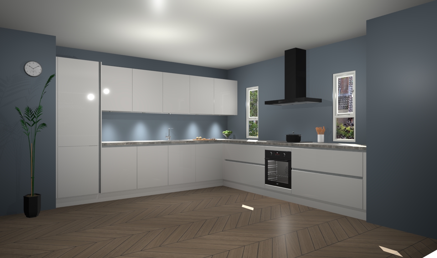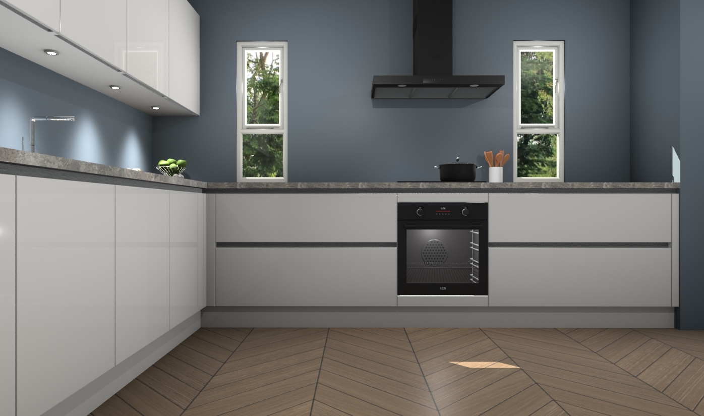 De zijdegrijze hoogglans greeploze keuken is een ideale hoekkeuken en heeft alle functies en apparatuur die u maar nodig kunt hebben. Bij de bestelling krijgt u een oven, inductiekookplaat, afzuigkap, vaatwasser en koelkast - deze kunnen desgewenst eenvoudig worden uitgebreid naar AEG na bestellen. Elke kast wordt ook voor gemonteerd geleverd met soft close deuren die jarenlang gebruik beloven. Stelt u zich voor dat u geen gedoe heeft met vervelende montage - vanaf het moment dat u uw bestelling plaats, duurt het slechts 7 weken voor het bij u thuis geleverd wordt.