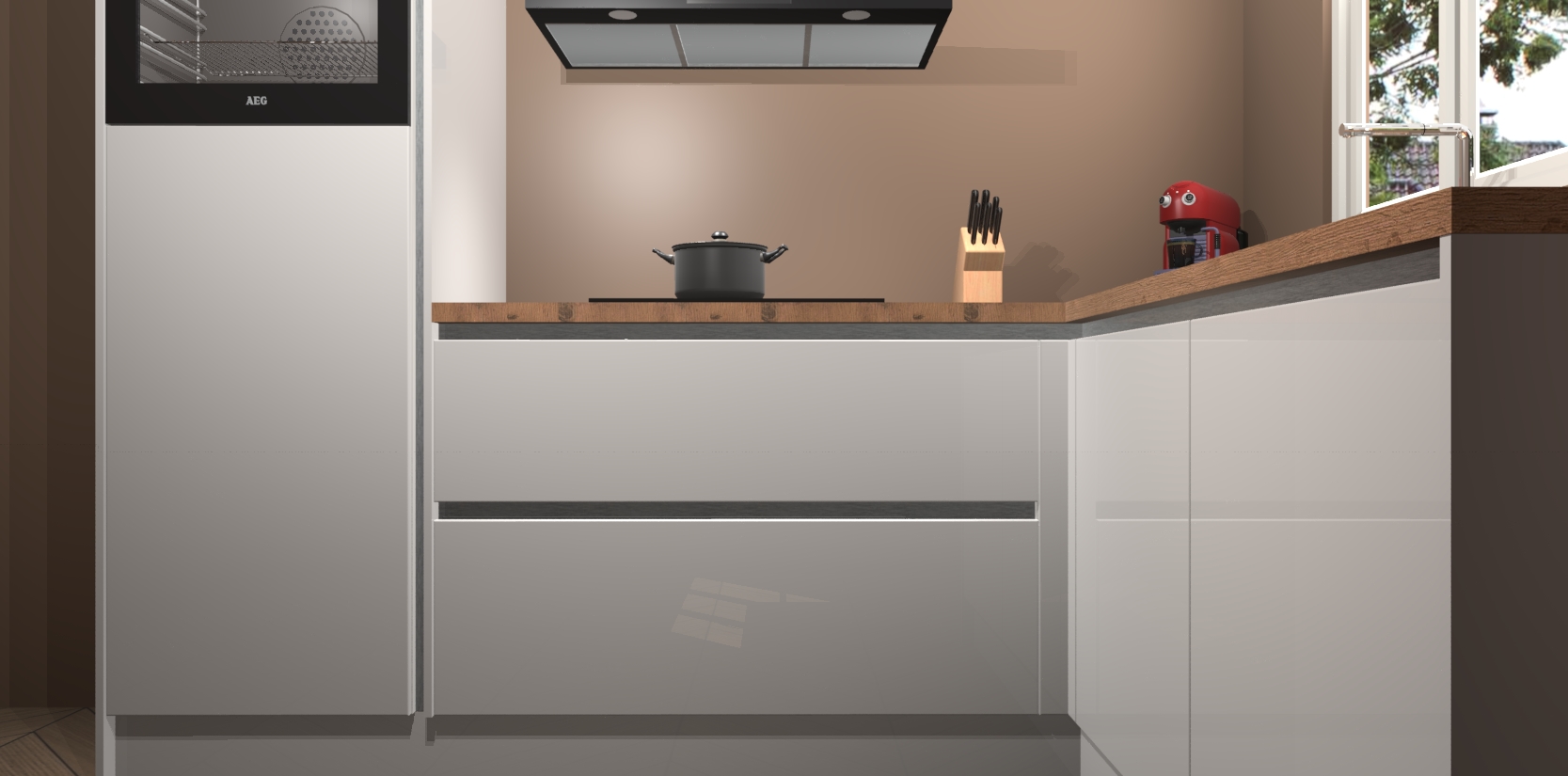 Inclusief plinten, stelpoten en werkblad