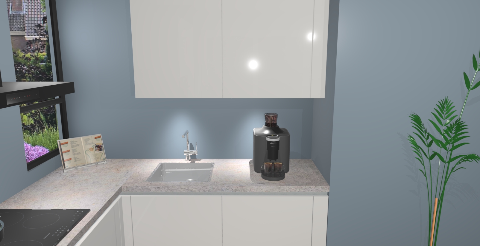 - De spoelbak is nog niet in gevreesd. Dit dient tijdens het werk gedaan te worden