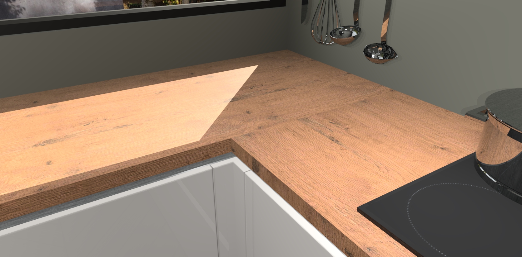 - Bij een hoekwerkblad zijn de hoeken in gevreesd en op maat gemaakt