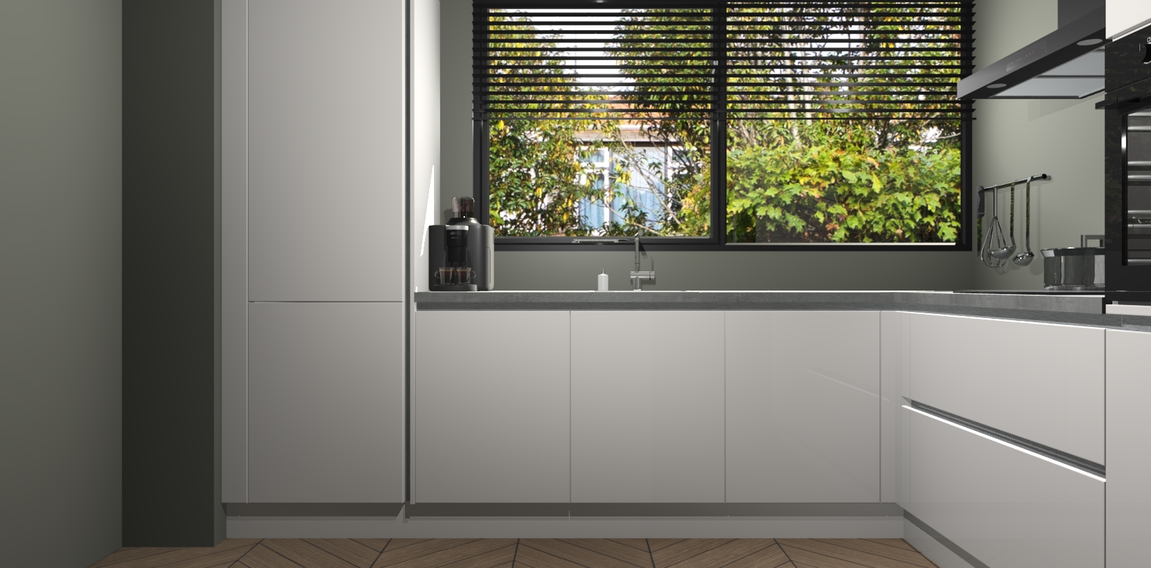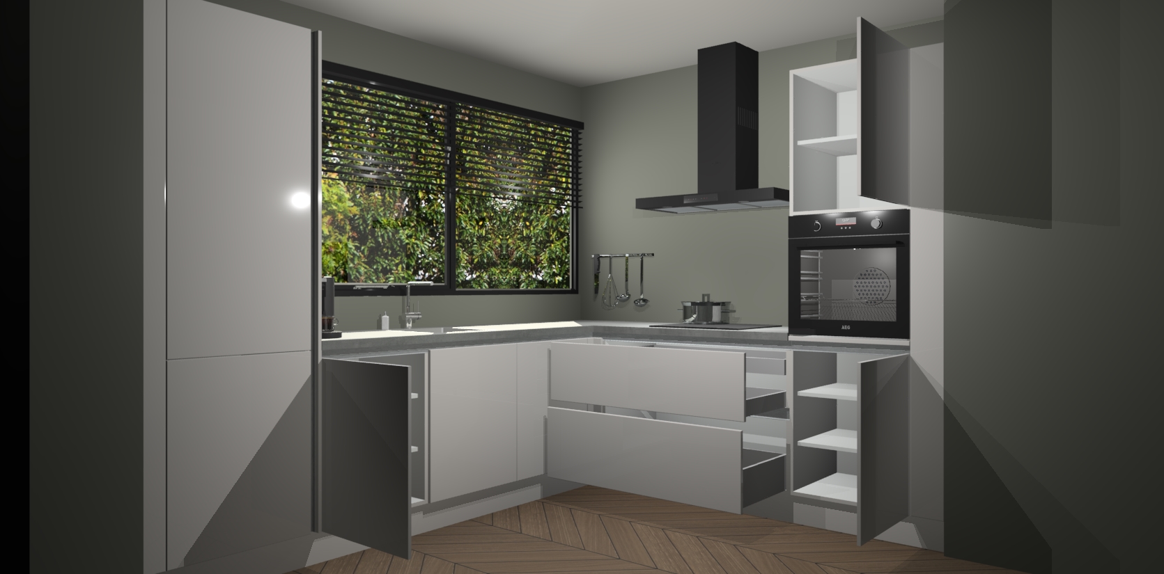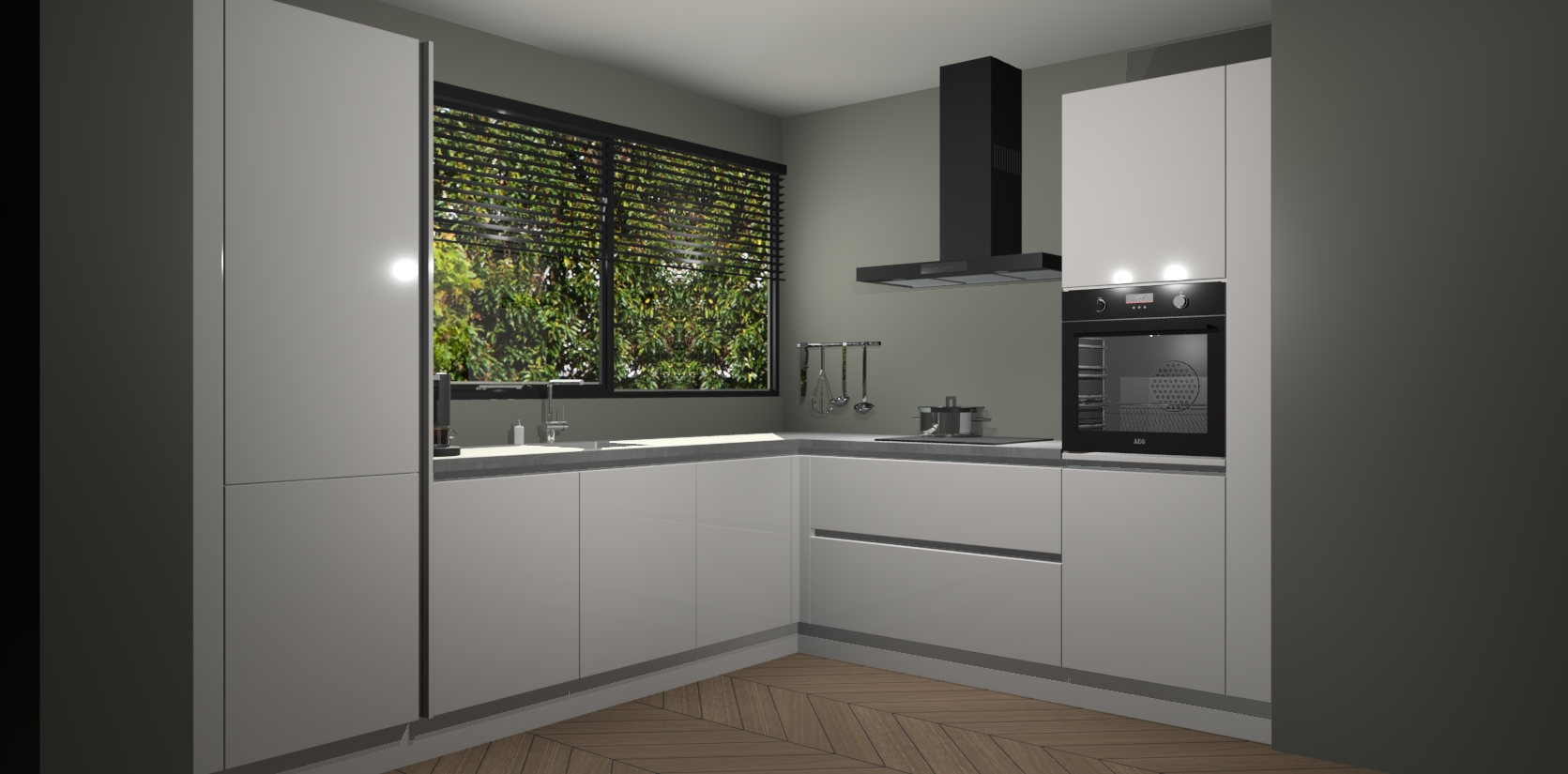 Met een modern, tijdloos design en ruime opslagruimte, zult u zich in no-time thuis voelen in uw nieuwe keuken. Uw leven wordt eenvoudiger met de soft-close deuren die voor het ultieme stille comfort zorgen - geen geluid dat u stoort terwijl u kookt. Ook is de keuken voorzien van 5 ingebouwde apparaten: een oven, inductie kookplaat, afzuigkap, vaatwasser en koelkast. Deze kunnen gemakkelijk na bestelling worden bijgewerkt naar AEG - waardoor uw luxe ervaring compleet is.