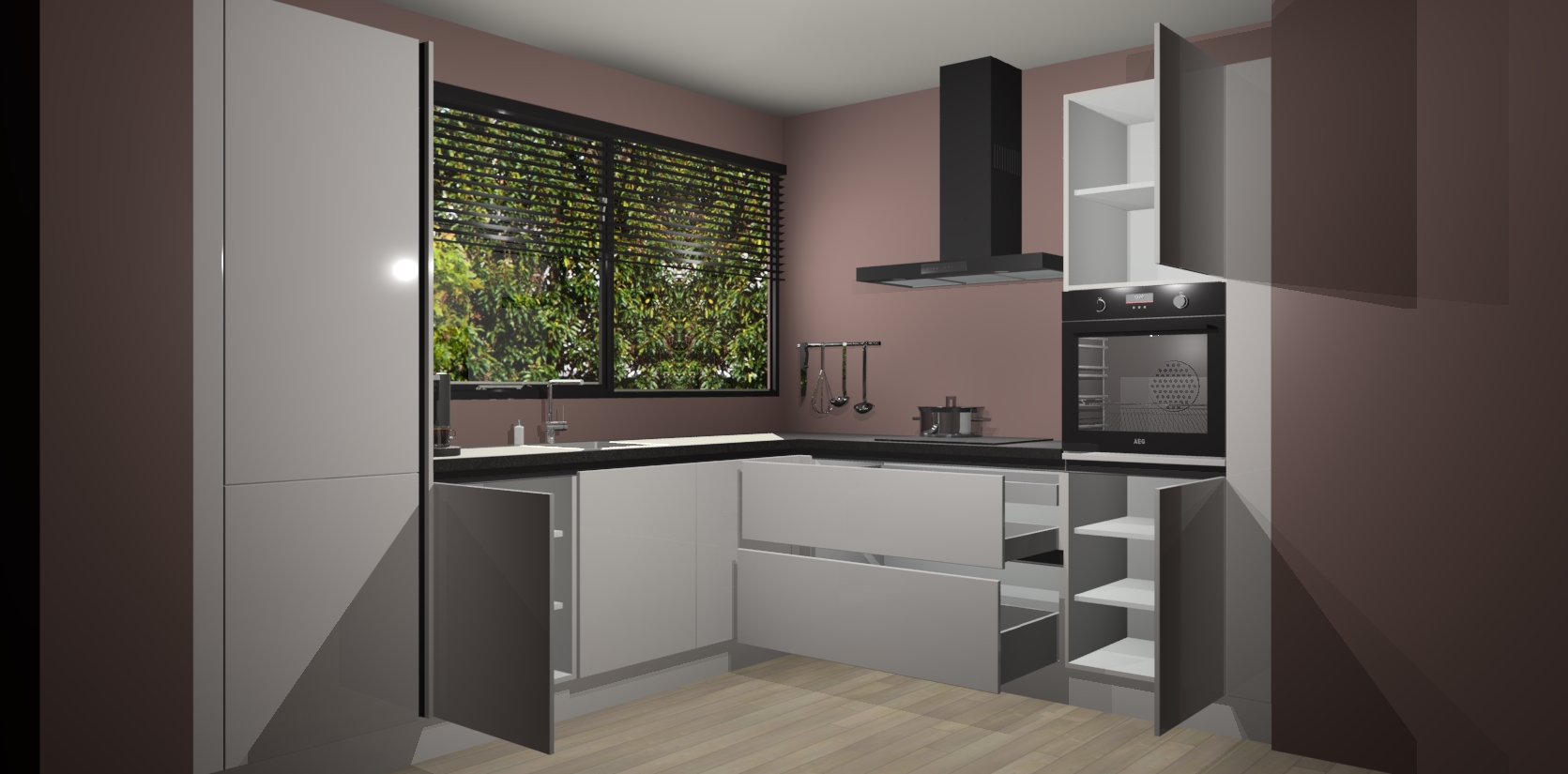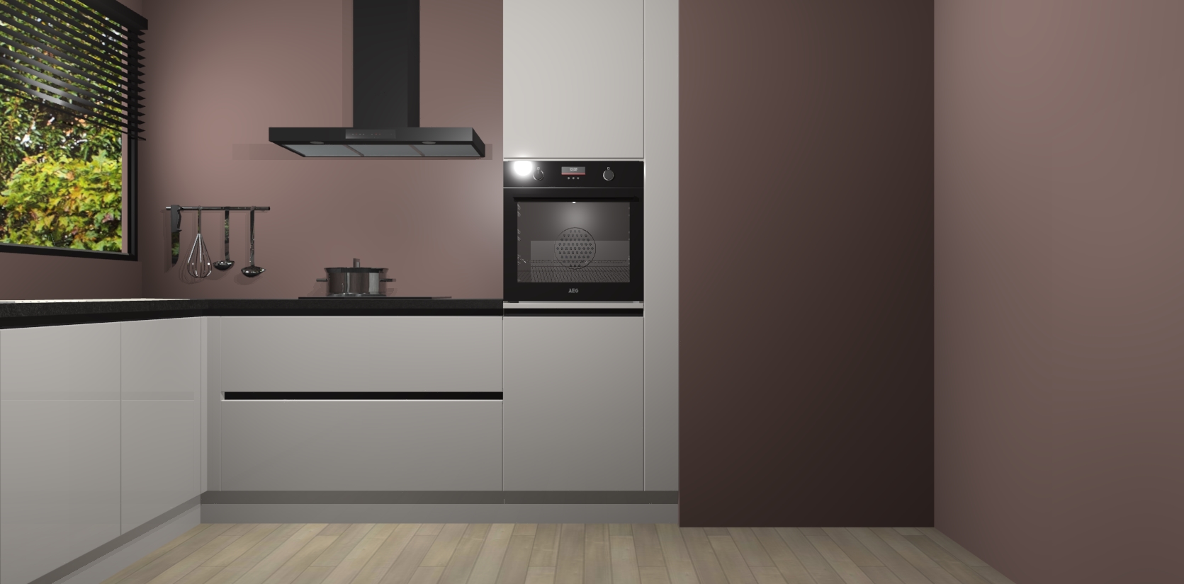 Met een modern, tijdloos design en ruime opslagruimte, zult u zich in no-time thuis voelen in uw nieuwe keuken. Uw leven wordt eenvoudiger met de soft-close deuren die voor het ultieme stille comfort zorgen - geen geluid dat u stoort terwijl u kookt. Ook is de keuken voorzien van 5 ingebouwde apparaten: een oven, inductie kookplaat, afzuigkap, vaatwasser en koelkast. Deze kunnen gemakkelijk na bestelling worden bijgewerkt naar AEG - waardoor uw luxe ervaring compleet is.