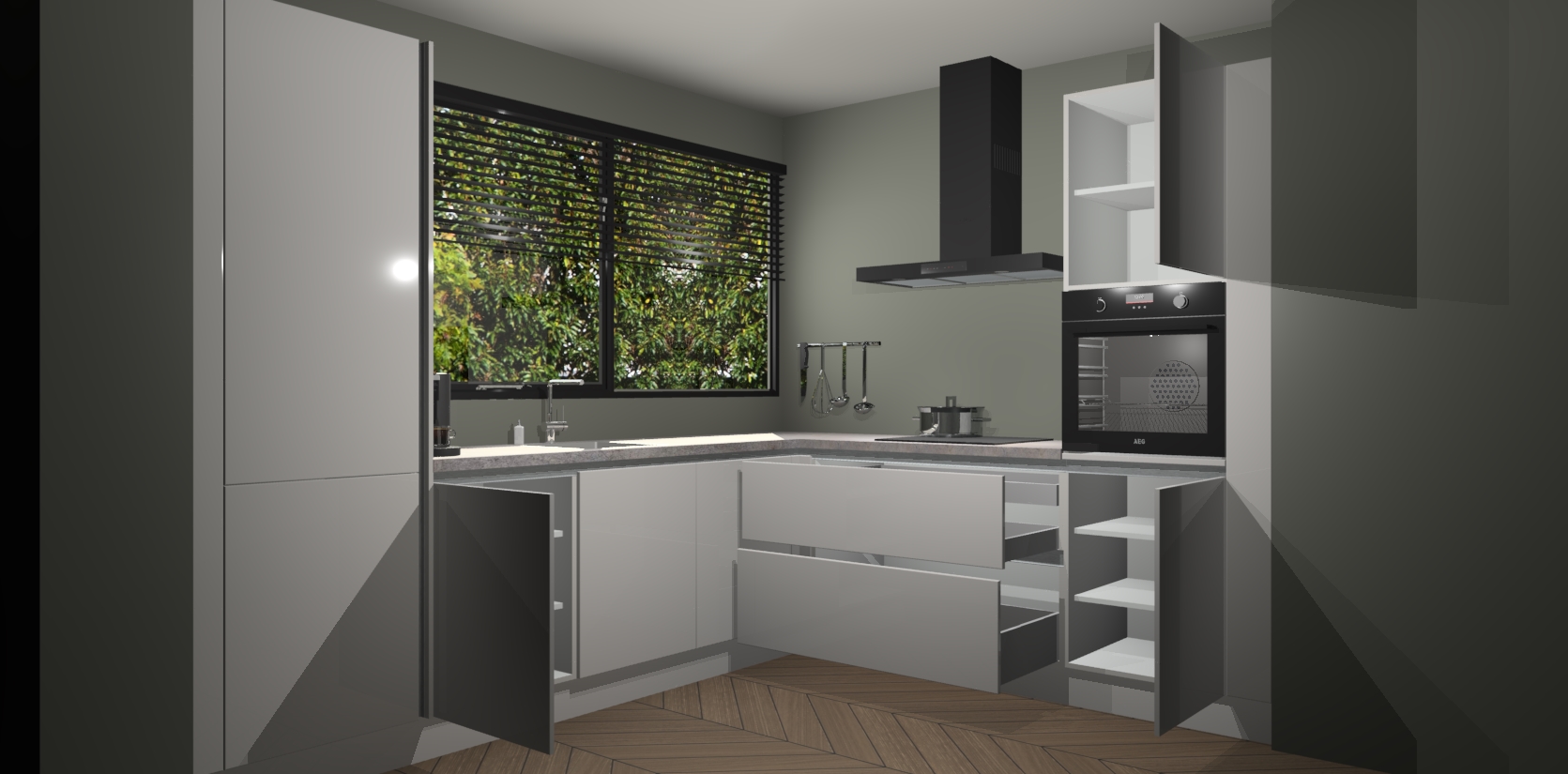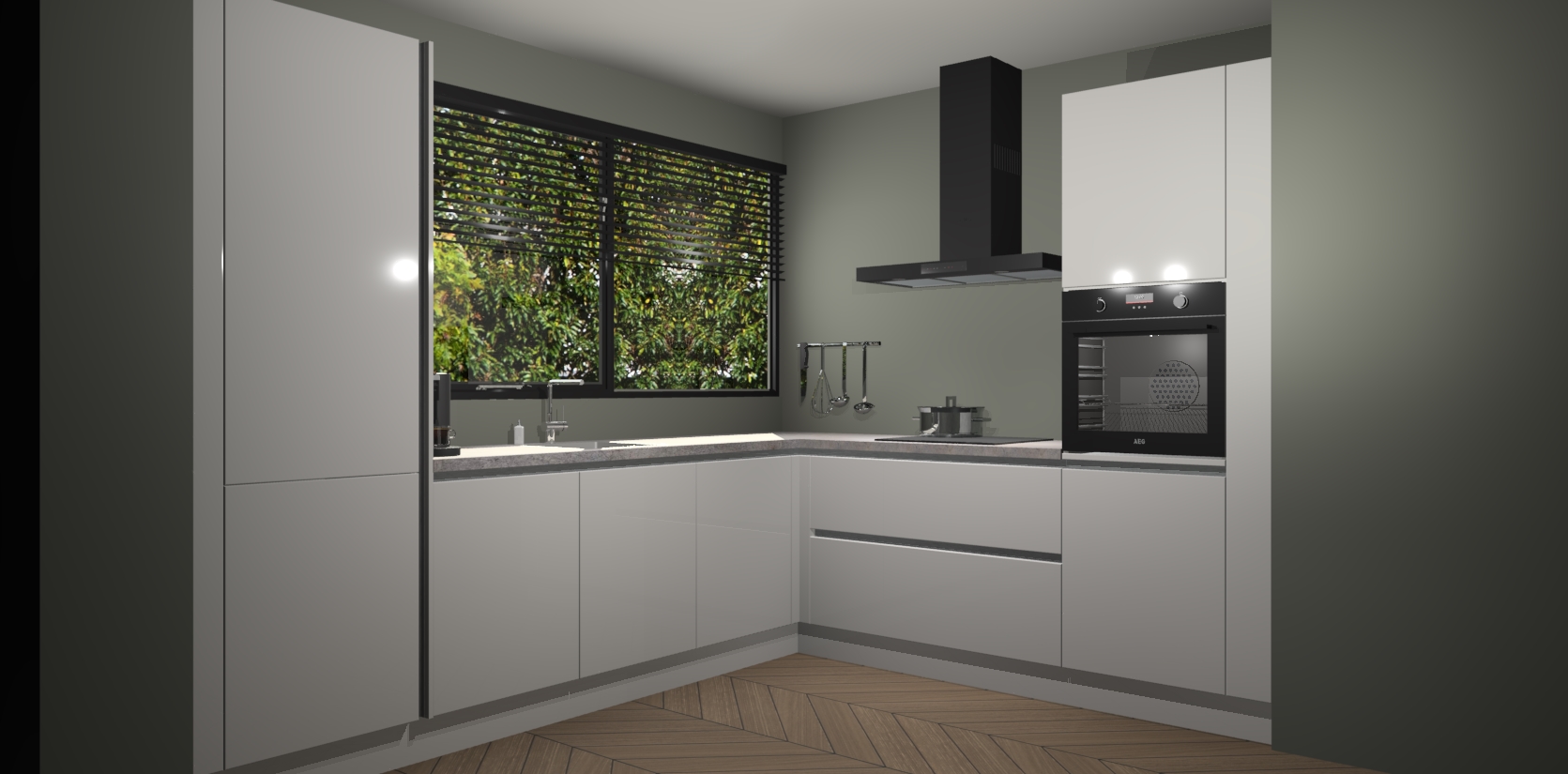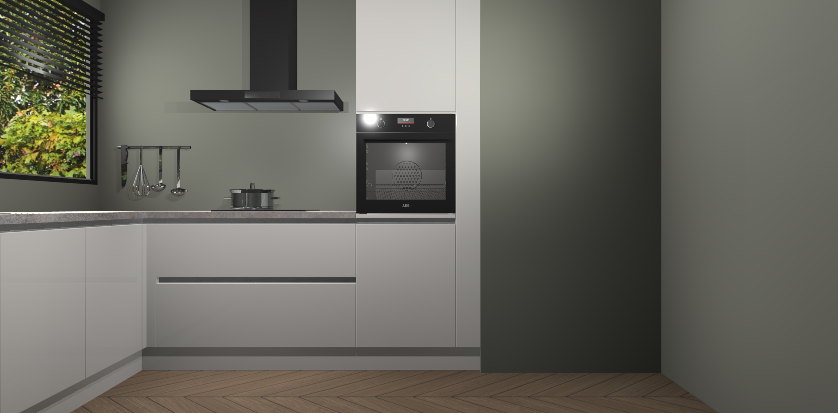 Met een modern, tijdloos design en ruime opslagruimte, zult u zich in no-time thuis voelen in uw nieuwe keuken. Uw leven wordt eenvoudiger met de soft-close deuren die voor het ultieme stille comfort zorgen - geen geluid dat u stoort terwijl u kookt. Ook is de keuken voorzien van 5 ingebouwde apparaten: een oven, inductie kookplaat, afzuigkap, vaatwasser en koelkast. Deze kunnen gemakkelijk na bestelling worden bijgewerkt naar AEG - waardoor uw luxe ervaring compleet is.