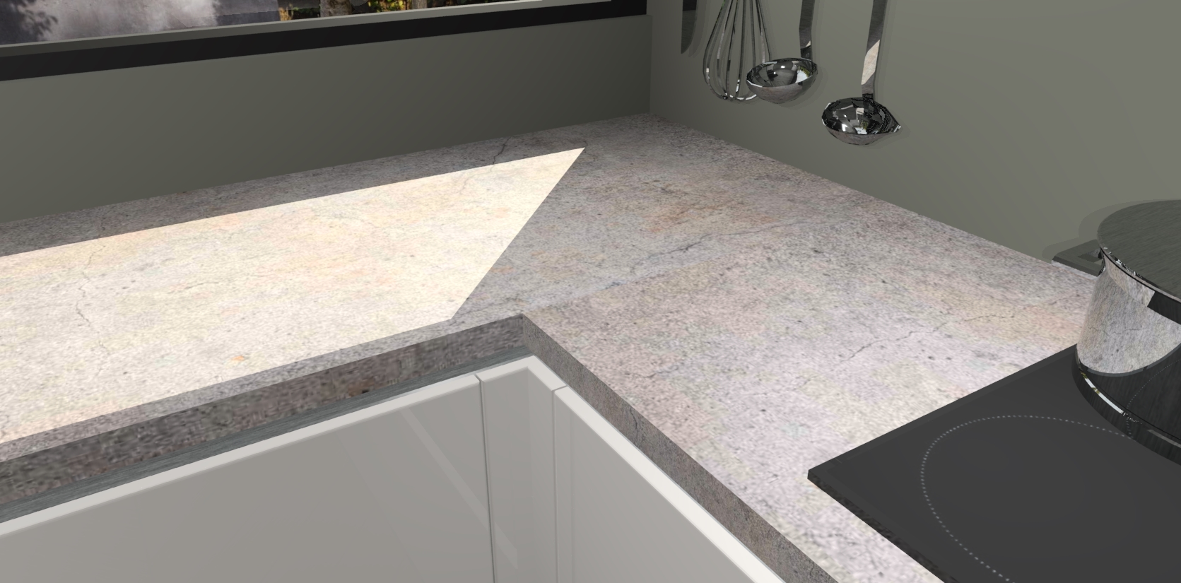 - Bij een hoekwerkblad zijn de hoeken in gevreesd en op maat gemaakt