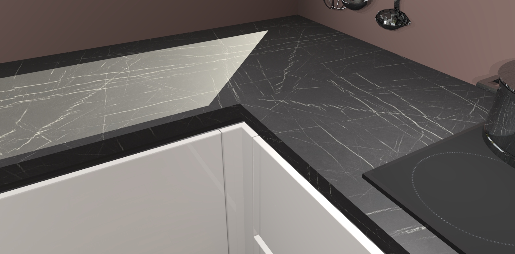 - Bij een hoekwerkblad zijn de hoeken in gevreesd en op maat gemaakt