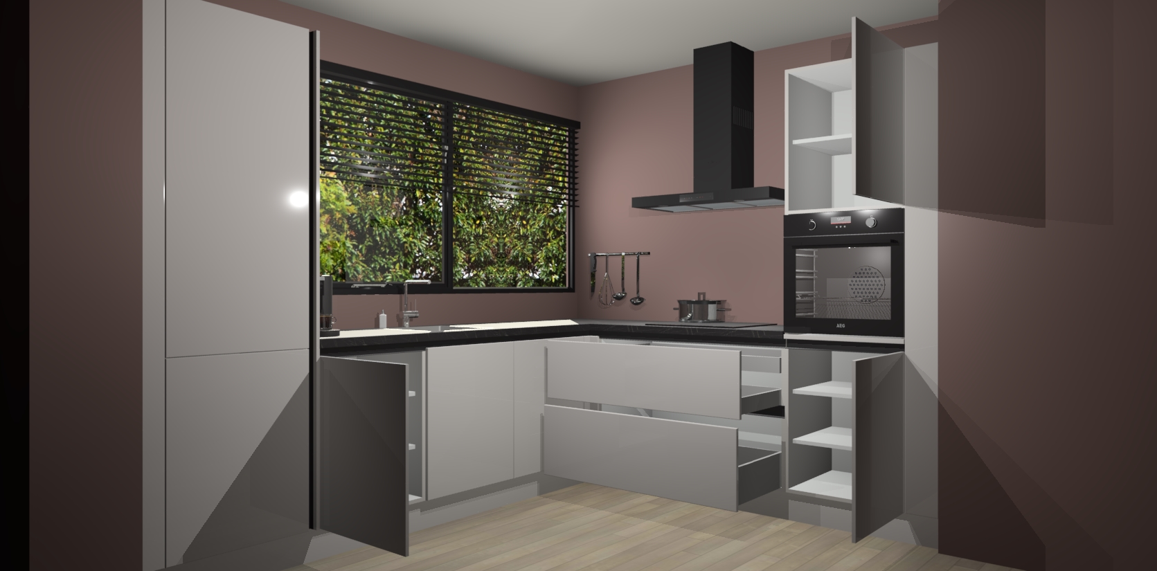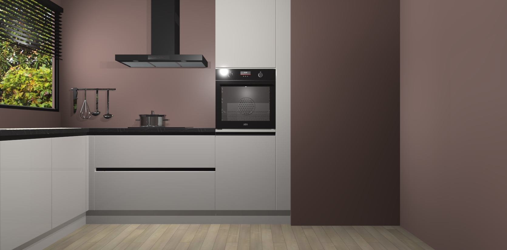 Met een modern, tijdloos design en ruime opslagruimte, zult u zich in no-time thuis voelen in uw nieuwe keuken. Uw leven wordt eenvoudiger met de soft-close deuren die voor het ultieme stille comfort zorgen - geen geluid dat u stoort terwijl u kookt. Ook is de keuken voorzien van 5 ingebouwde apparaten: een oven, inductie kookplaat, afzuigkap, vaatwasser en koelkast. Deze kunnen gemakkelijk na bestelling worden bijgewerkt naar AEG - waardoor uw luxe ervaring compleet is.