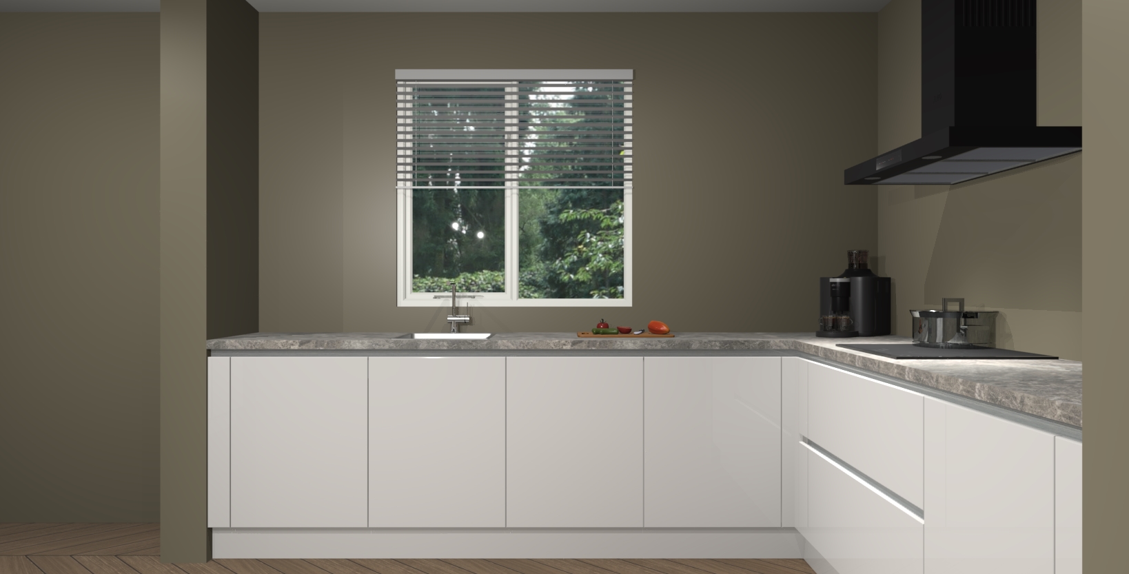 Met een modern, tijdloos design en ruime opslagruimte, zult u zich in no-time thuis voelen in uw nieuwe keuken. Uw leven wordt eenvoudiger met de soft-close deuren die voor het ultieme stille comfort zorgen - geen geluid dat u stoort terwijl u kookt. Ook is de keuken voorzien van 5 ingebouwde apparaten: een oven, inductie kookplaat, afzuigkap, vaatwasser en koelkast. Deze kunnen gemakkelijk na bestelling worden bijgewerkt naar AEG - waardoor uw luxe ervaring compleet is.