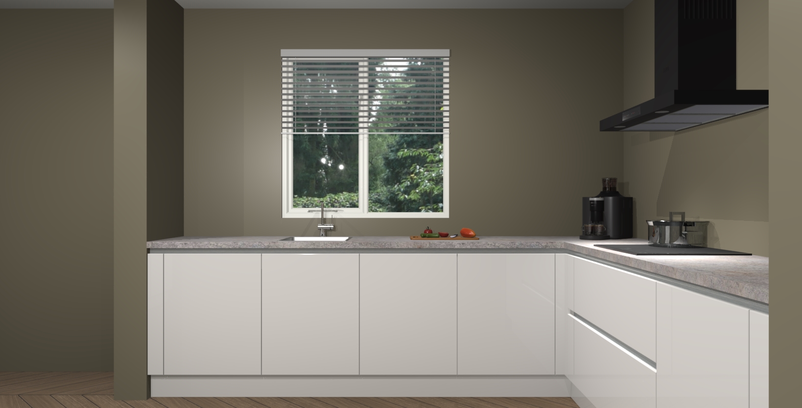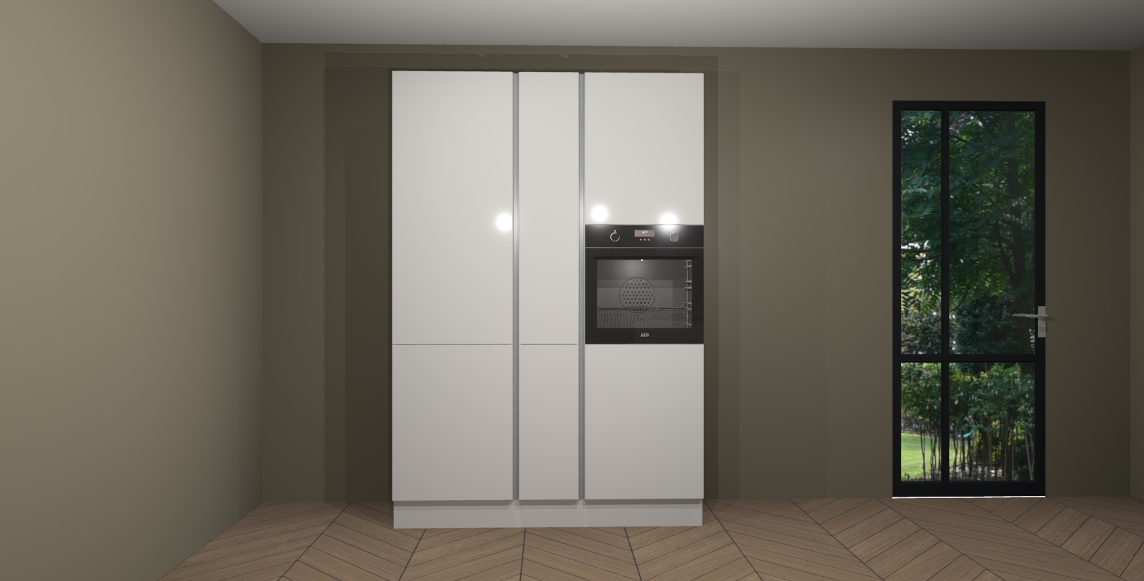 Met een modern, tijdloos design en ruime opslagruimte, zult u zich in no-time thuis voelen in uw nieuwe keuken. Uw leven wordt eenvoudiger met de soft-close deuren die voor het ultieme stille comfort zorgen - geen geluid dat u stoort terwijl u kookt. Ook is de keuken voorzien van 5 ingebouwde apparaten: een oven, inductie kookplaat, afzuigkap, vaatwasser en koelkast. Deze kunnen gemakkelijk na bestelling worden bijgewerkt naar AEG - waardoor uw luxe ervaring compleet is.