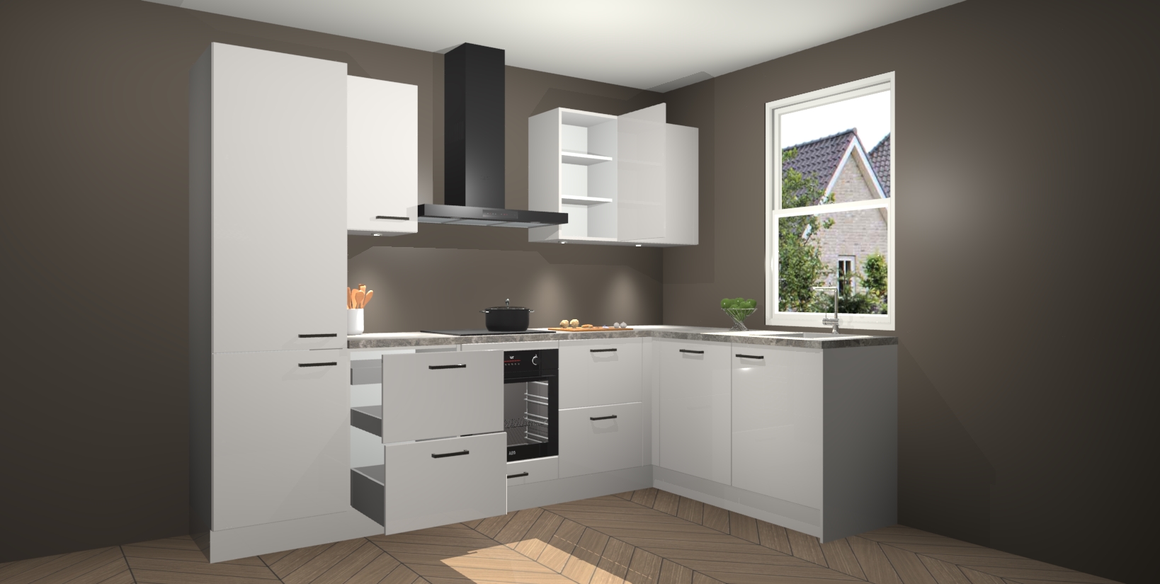 Maak kennis met de trendsettende en luxe Zijdegrijze hoogglans keuken Bazel! Deze uitzonderlijke keuken van Duitse kwaliteit is stijlvol, modern en perfect om elk huis mee op te fleuren. De binnenkant van de kasten worden meegenomen in een bijpassende kleur om een samenhangende eigentijdse esthetiek te voltooien. U zult dol zijn op hoe uw pas gerenoveerde keuken eruitziet met de Zijdegrijze hoogglans editie!