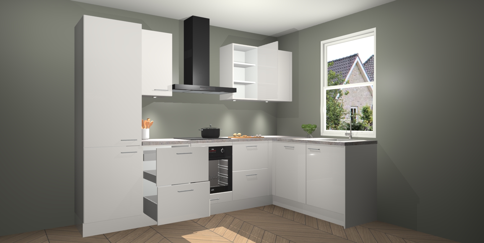 In deze box zijn alle kleuren verzameld van de deuren en werkbladen. Vraag de gratis kleurenbox aan en kijk thuis rustig verder!