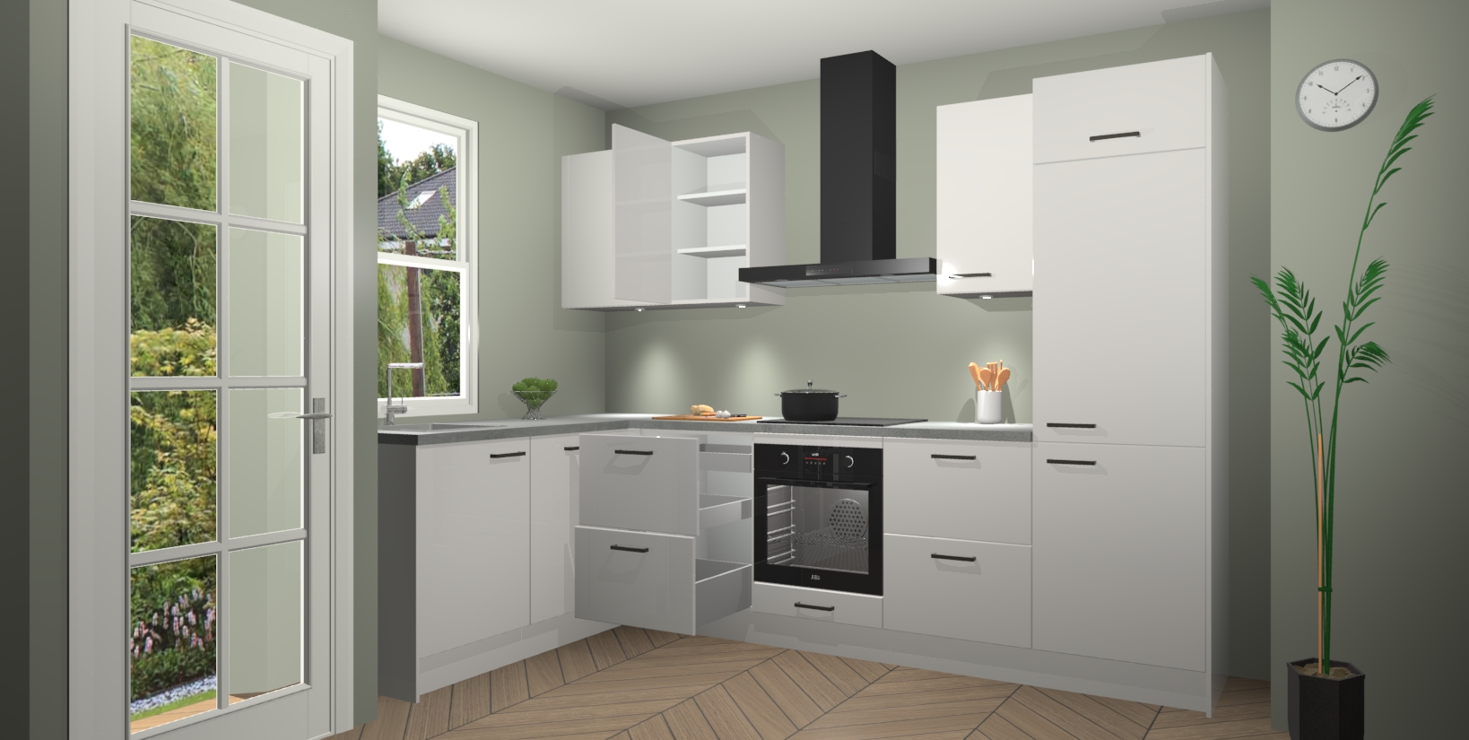 U hoeft zich ook geen zorgen te maken over een gebrek aan opbergruimte, want deze keuken heeft voldoende opbergmogelijkheden zowel boven als onder het aanrecht. Om het leven nog makkelijker te maken, wordt deze moderne hoekkeuken geleverd met 5 ingebouwde apparaten, waaronder een oven, inductiekookplaat, afzuigkap, vaatwasser en koelkast, zodat u in een mum van tijd klaar bent voor actie!