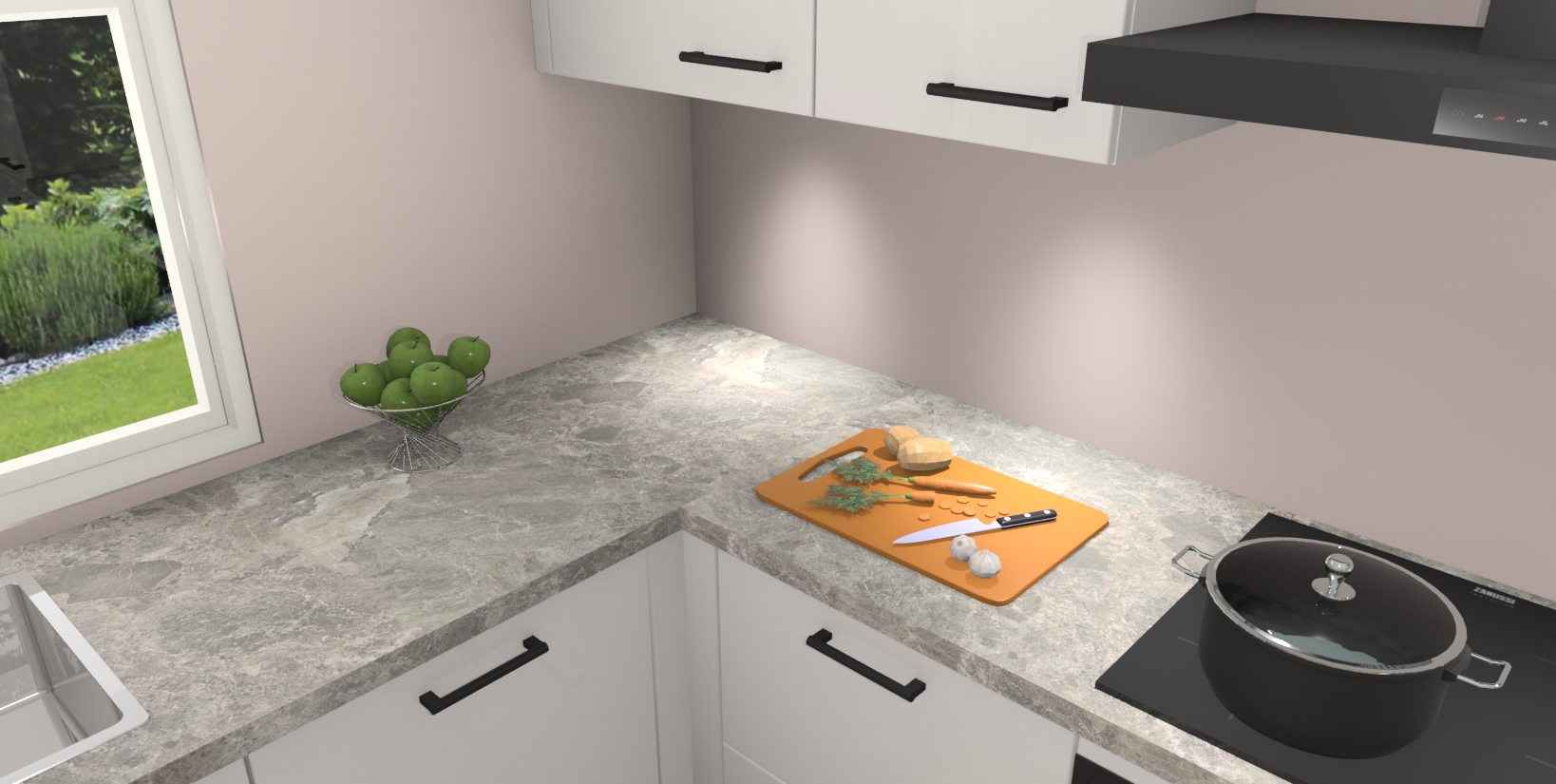- Bij een hoekwerkblad zijn de hoeken in gevreesd en op maat gemaakt