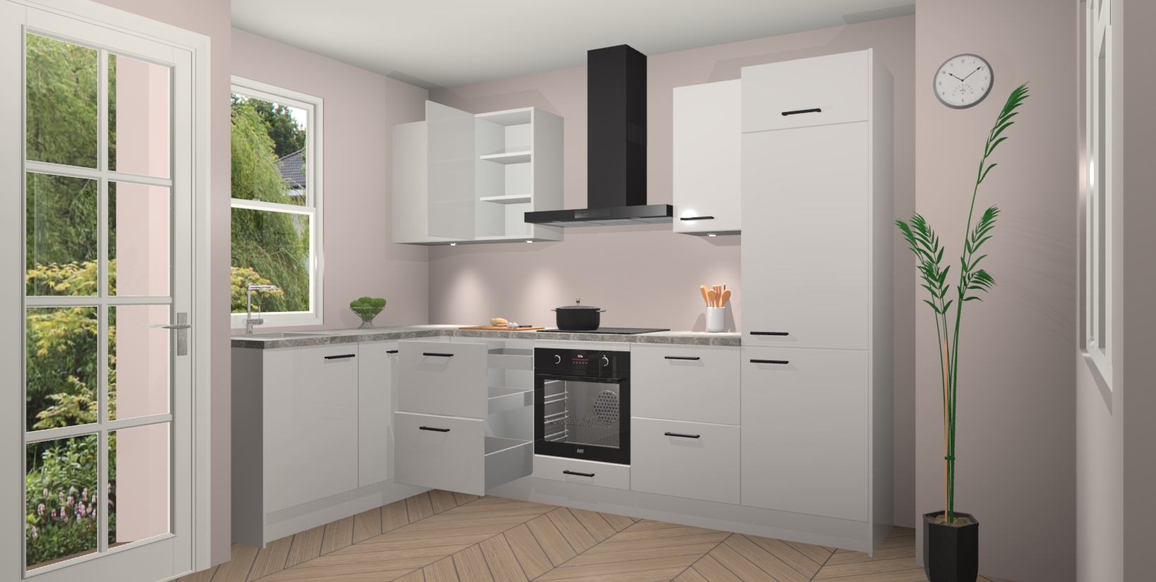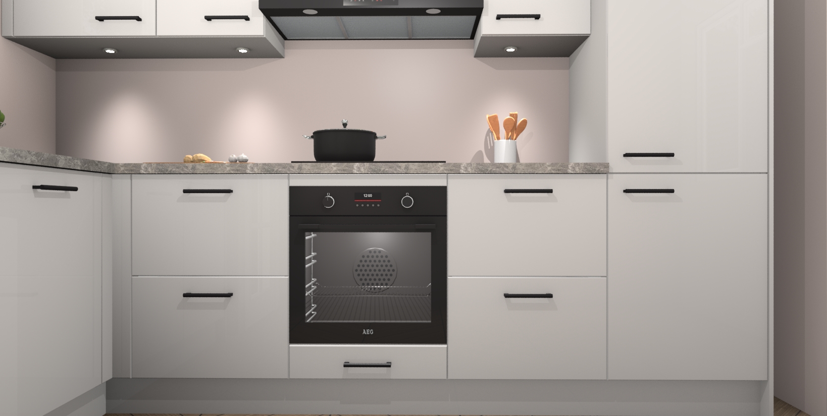 U hoeft zich ook geen zorgen te maken over een gebrek aan opbergruimte, want deze keuken heeft voldoende opbergmogelijkheden zowel boven als onder het aanrecht. Om het leven nog makkelijker te maken, wordt deze moderne hoekkeuken geleverd met 5 ingebouwde apparaten, waaronder een oven, inductiekookplaat, afzuigkap, vaatwasser en koelkast, zodat u in een mum van tijd klaar bent voor actie!