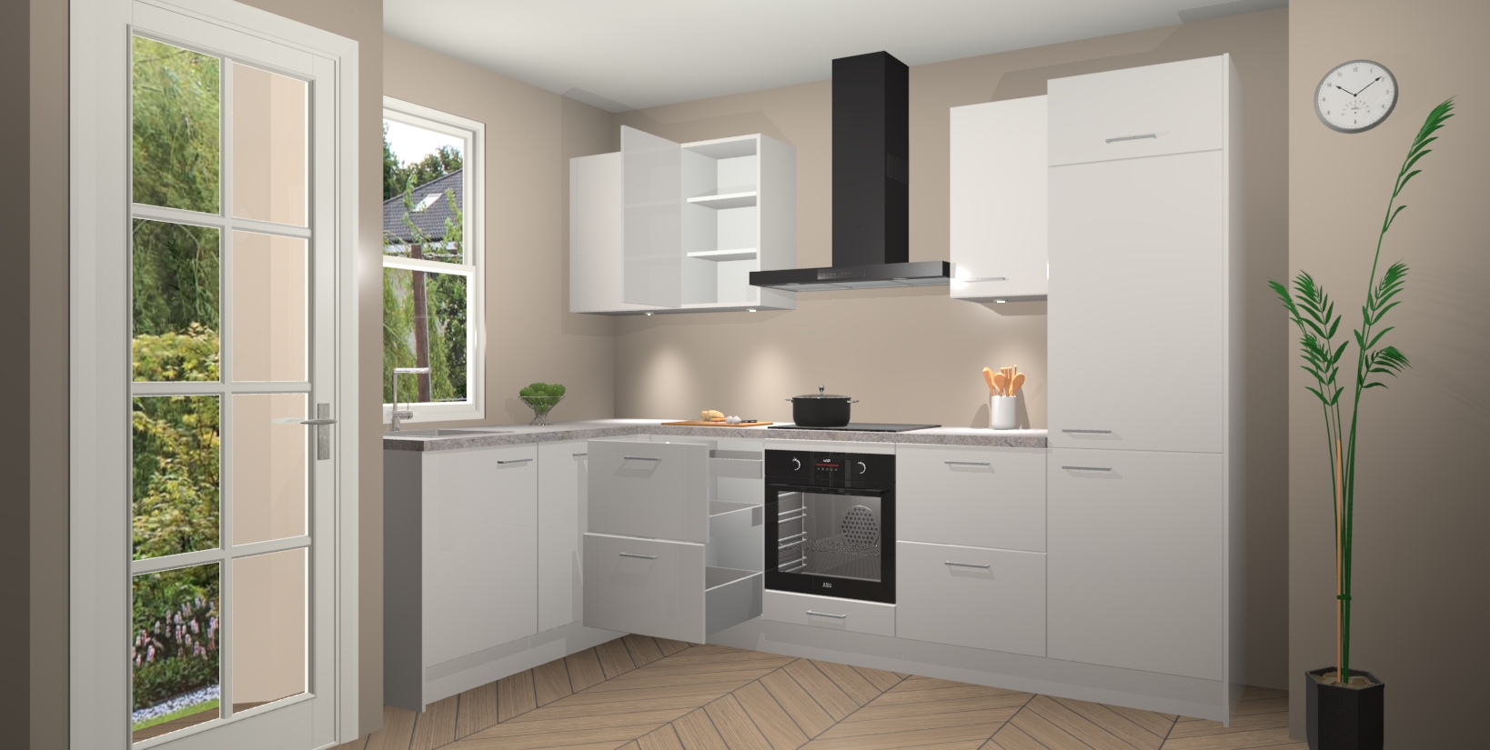 U hoeft zich ook geen zorgen te maken over een gebrek aan opbergruimte, want deze keuken heeft voldoende opbergmogelijkheden zowel boven als onder het aanrecht. Om het leven nog makkelijker te maken, wordt deze moderne hoekkeuken geleverd met 5 ingebouwde apparaten, waaronder een oven, inductiekookplaat, afzuigkap, vaatwasser en koelkast, zodat u in een mum van tijd klaar bent voor actie!