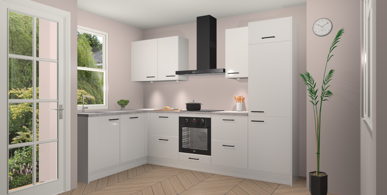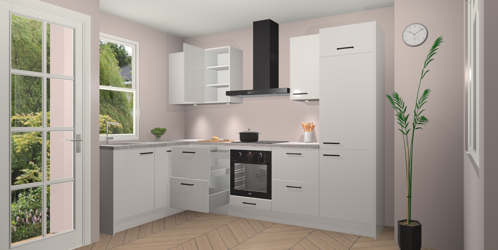 U hoeft zich ook geen zorgen te maken over een gebrek aan opbergruimte, want deze keuken heeft voldoende opbergmogelijkheden zowel boven als onder het aanrecht. Om het leven nog makkelijker te maken, wordt deze moderne hoekkeuken geleverd met 5 ingebouwde apparaten, waaronder een oven, inductiekookplaat, afzuigkap, vaatwasser en koelkast, zodat u in een mum van tijd klaar bent voor actie!
