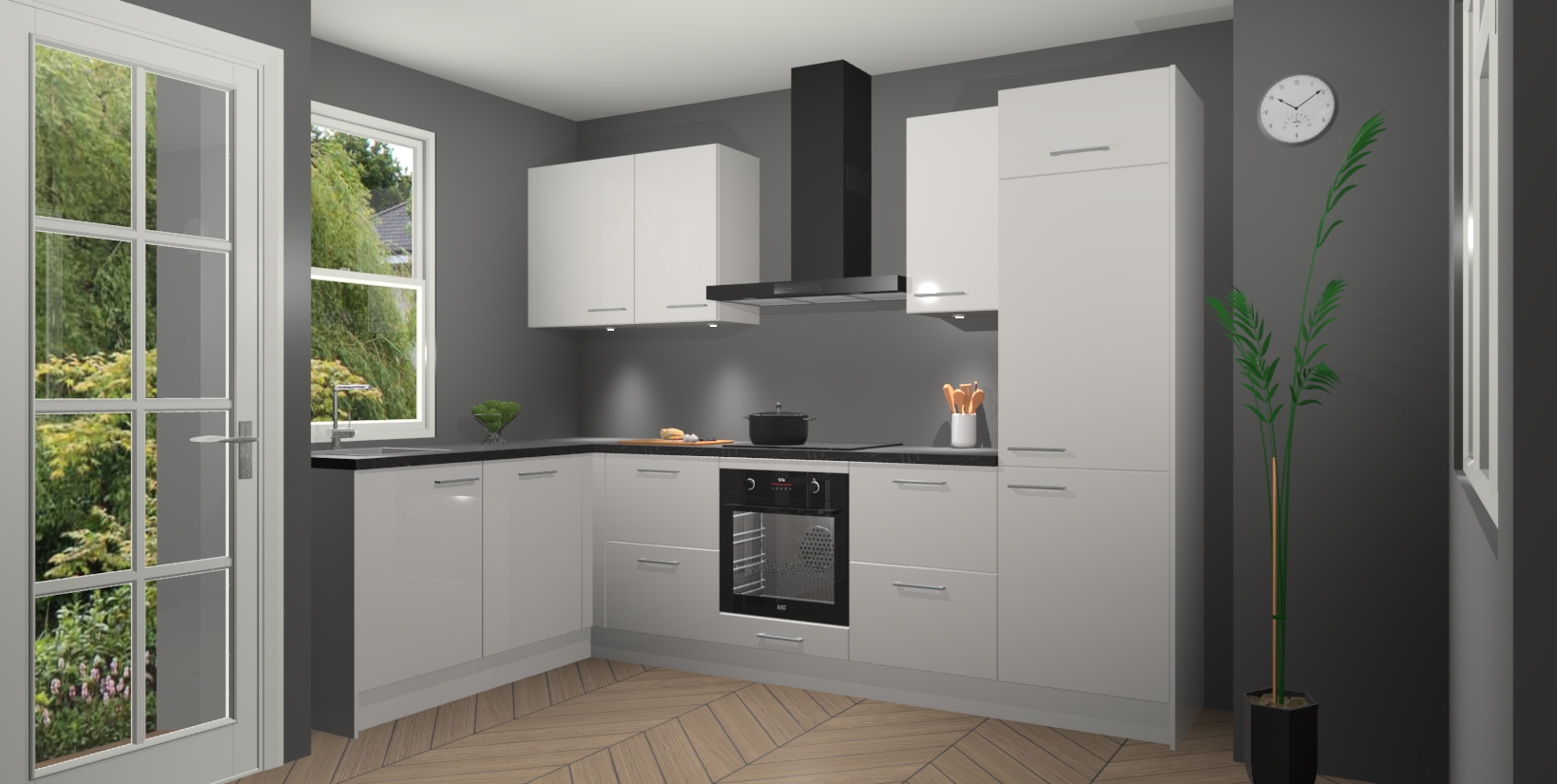 U hoeft zich ook geen zorgen te maken over een gebrek aan opbergruimte, want deze keuken heeft voldoende opbergmogelijkheden zowel boven als onder het aanrecht. Om het leven nog makkelijker te maken, wordt deze moderne hoekkeuken geleverd met 5 ingebouwde apparaten, waaronder een oven, inductiekookplaat, afzuigkap, vaatwasser en koelkast, zodat u in een mum van tijd klaar bent voor actie!