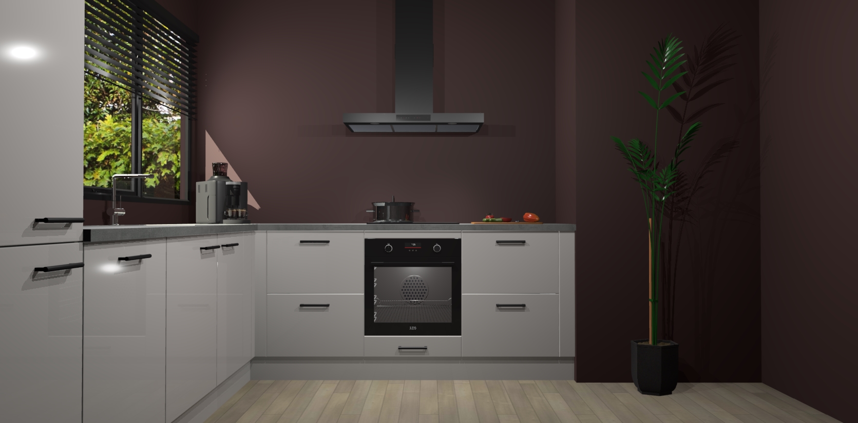 Met een modern, tijdloos design en ruime opslagruimte, zult u zich in no-time thuis voelen in uw nieuwe keuken. Uw leven wordt eenvoudiger met de soft-close deuren die voor het ultieme stille comfort zorgen - geen geluid dat u stoort terwijl u kookt. Ook is de keuken voorzien van 5 ingebouwde apparaten: een oven, inductie kookplaat, afzuigkap, vaatwasser en koelkast. Deze kunnen gemakkelijk na bestelling worden bijgewerkt naar AEG - waardoor uw luxe ervaring compleet is.