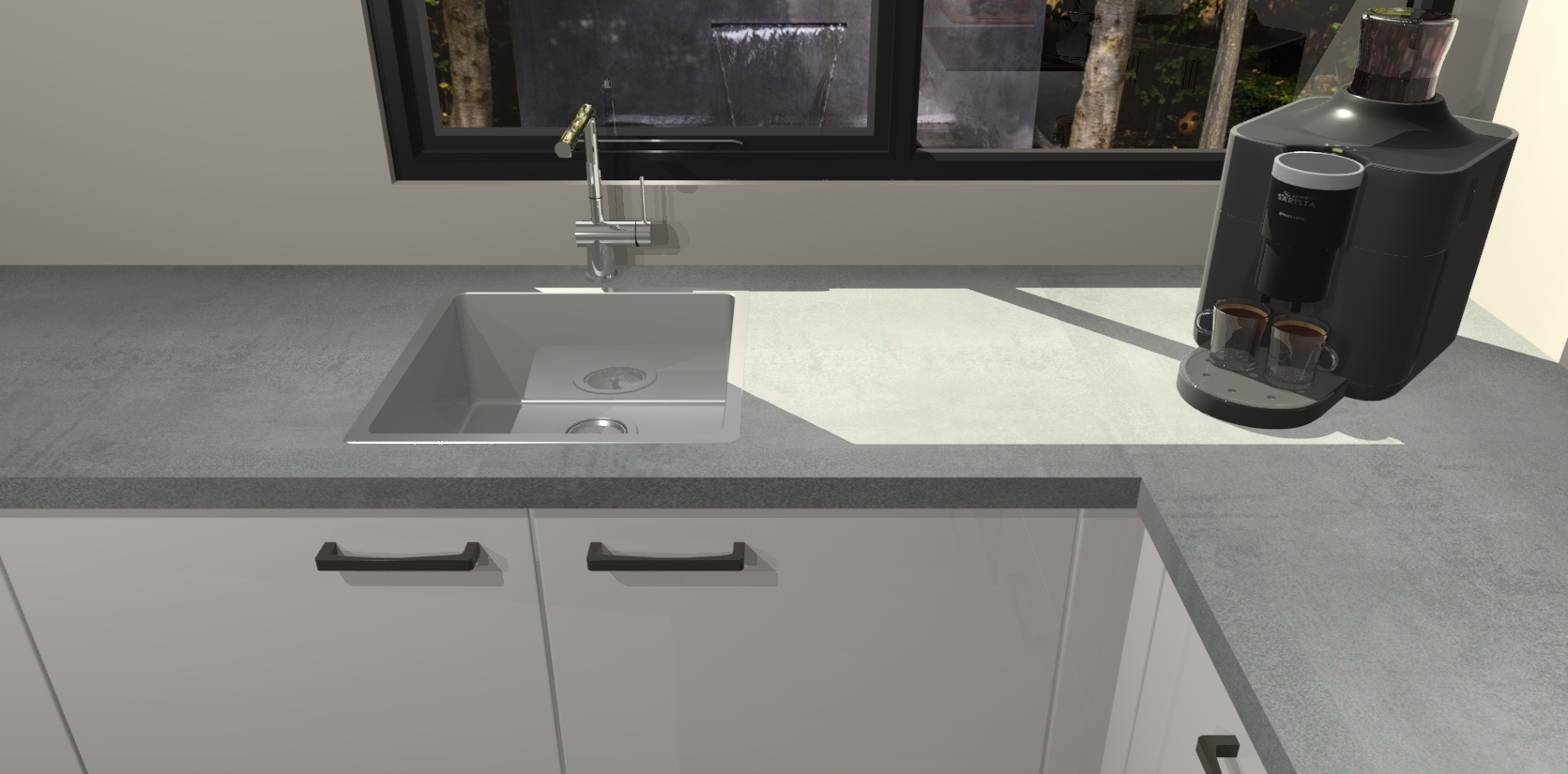 - De spoelbak is nog niet in gevreesd. Dit dient tijdens het werk gedaan te worden