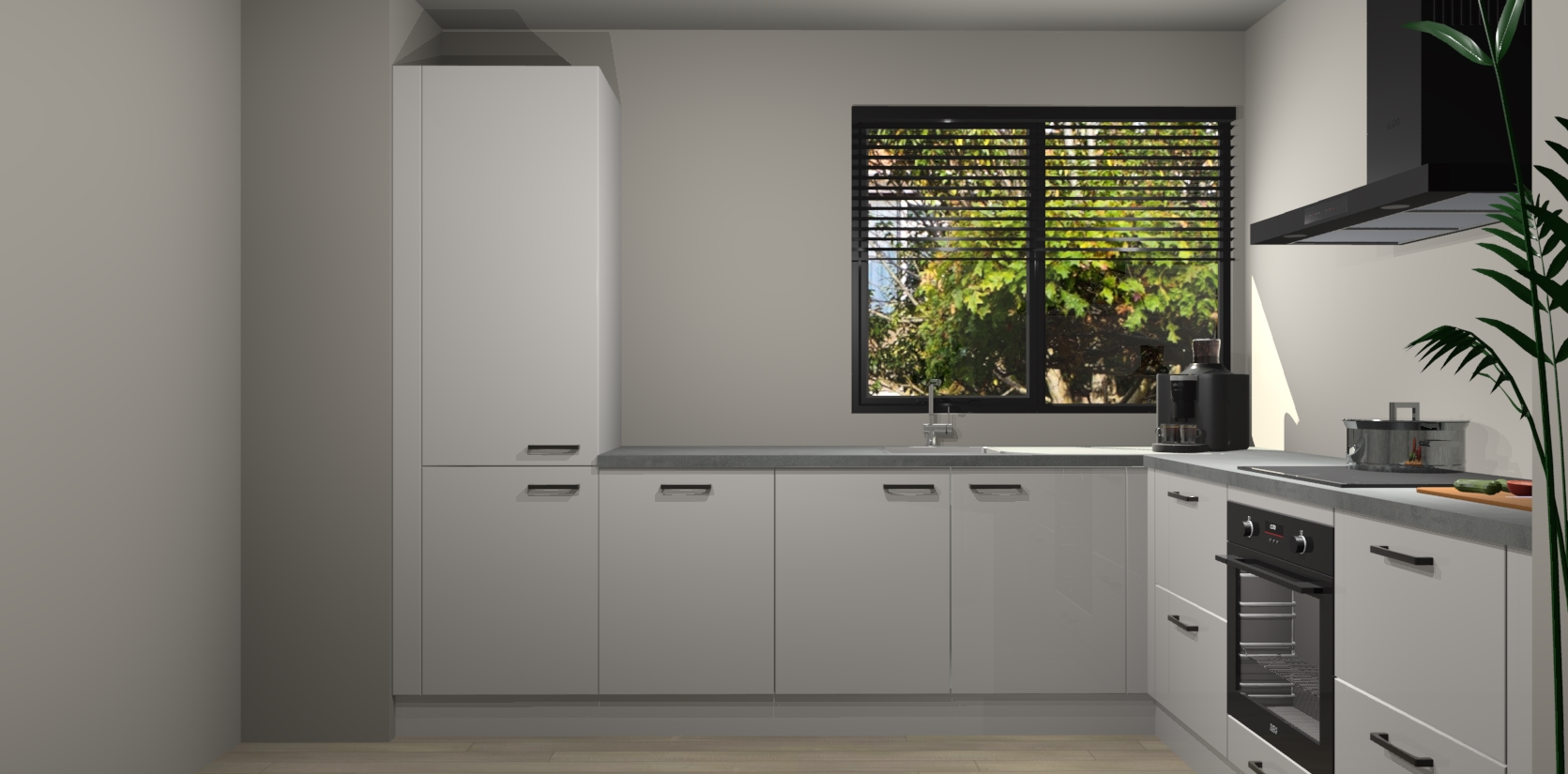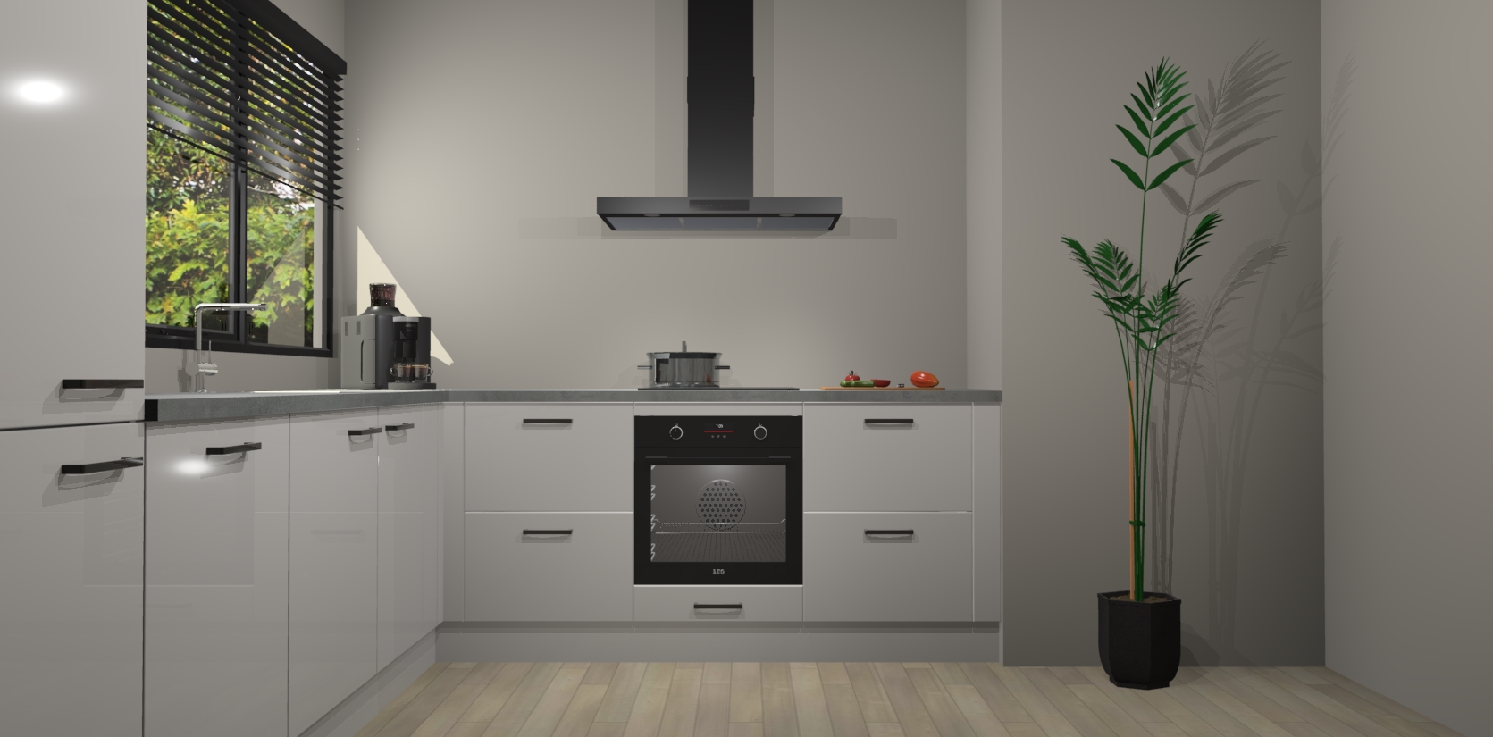 Met een modern, tijdloos design en ruime opslagruimte, zult u zich in no-time thuis voelen in uw nieuwe keuken. Uw leven wordt eenvoudiger met de soft-close deuren die voor het ultieme stille comfort zorgen - geen geluid dat u stoort terwijl u kookt. Ook is de keuken voorzien van 5 ingebouwde apparaten: een oven, inductie kookplaat, afzuigkap, vaatwasser en koelkast. Deze kunnen gemakkelijk na bestelling worden bijgewerkt naar AEG - waardoor uw luxe ervaring compleet is.