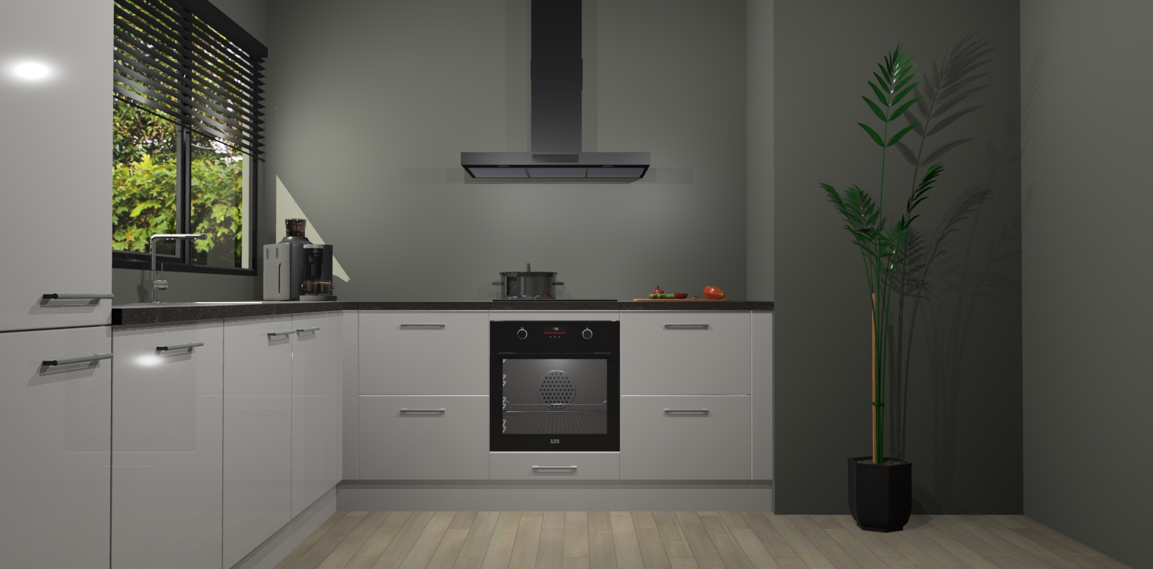 Met een modern, tijdloos design en ruime opslagruimte, zult u zich in no-time thuis voelen in uw nieuwe keuken. Uw leven wordt eenvoudiger met de soft-close deuren die voor het ultieme stille comfort zorgen - geen geluid dat u stoort terwijl u kookt. Ook is de keuken voorzien van 5 ingebouwde apparaten: een oven, inductie kookplaat, afzuigkap, vaatwasser en koelkast. Deze kunnen gemakkelijk na bestelling worden bijgewerkt naar AEG - waardoor uw luxe ervaring compleet is.