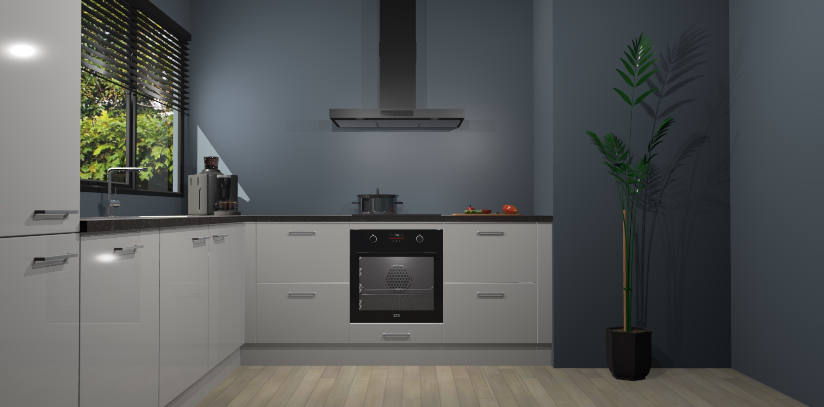 Met een modern, tijdloos design en ruime opslagruimte, zult u zich in no-time thuis voelen in uw nieuwe keuken. Uw leven wordt eenvoudiger met de soft-close deuren die voor het ultieme stille comfort zorgen - geen geluid dat u stoort terwijl u kookt. Ook is de keuken voorzien van 5 ingebouwde apparaten: een oven, inductie kookplaat, afzuigkap, vaatwasser en koelkast. Deze kunnen gemakkelijk na bestelling worden bijgewerkt naar AEG - waardoor uw luxe ervaring compleet is.